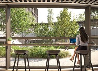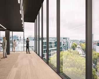 Minimaal 70% van de buitenwandoppervlakte bestaat bovendien uit glas, terwijl klimaatplafonds in combinatie met vooruitstrevende technieken als warmtepompen en CO2sensoren een uitstekend thermisch comfort en een gezonde binnenluchtkwaliteit garanderen.