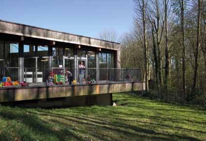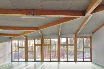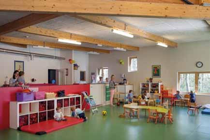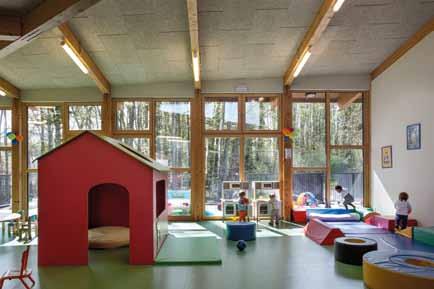 L’absence de faux-plafond n’a toutefois pas nuit au traitement acoustique de la crèche qui est dotée de fibre de bois absorbante.