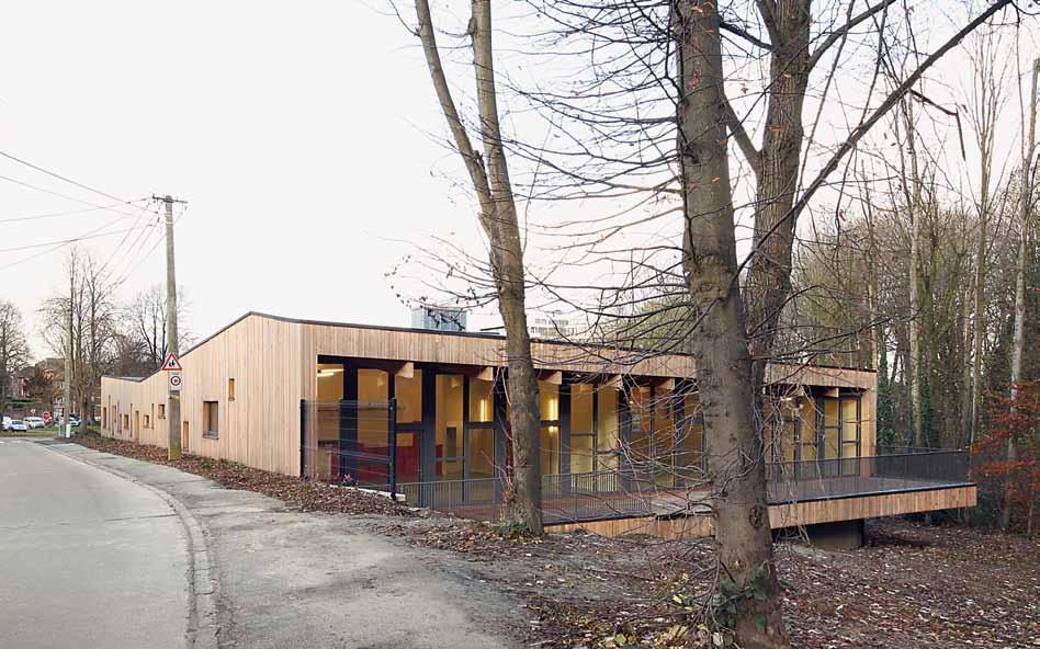 Cette crèche s’implante dans le site remarquable du Parc de la Dodaine à Nivelles et vient compléter des locaux existants datant des années septante. La nouvelle aile avait pour programme d’accueillir deux unités de 20 enfants au total, des locaux administratifs, un réfectoire pour le personnel, pouvant se muer en salle de réunion.