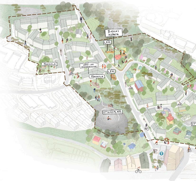 Birkakvarteren i Nacka – stadsdelsprojektet som ska leva upp till alla 17 hållbarhetsmål i Agenda 2030. Bild: Nyréns