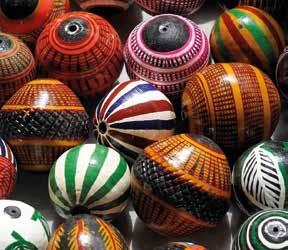 Pour transformer ces morceaux de terre en perles, les artisans forment, cuisent puis décorent chaque bille à la main à l’aide de pigments naturels et d’une plume de poule en la tournant entre leur pied ! Un savoirfaire unique qui perdure depuis des siècles et un spectacle réellement fascinant !
