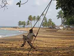 met un point d’honneur à manger sans couverts ni exhausteurs chimiques), un généreux buffet composé à 90 % d’ingrédients produits dans un rayon de 5 km par les villageois des environs, associés au projet. Au menu : crudités, alloco, frites de manioc accompagnées de poisson grillé ; sauce graine aux haricots avec raie fumée accompagnée de riz ; sauce feuille au crabe poilu accompagnée d’akpessi de banane ; poulet braisé/grillé accompagné d’Attiéké ; assiette de fruits. Après ces joyeuses agapes, on se détend et on profite de la nature. Volley beach, sieste dans le hamac géant, tyrolienne, baignade, tennis de plage, flying disc, pétanque, jeux de société… : les options ne manquent pas ! Et pour ceux qui souhaiteraient prolonger le plaisir, il est possible de dormir sur place, bercé par le doux ressac de l’océan dans des tentes confortables plantées à même le sable, après une soirée partagée entre dîner aux chandelles : veillée de contes au feu de camp et bal poussière au rythme du bollo super, une danse traditionnelle kroumen. Un retour à la nature salvateur, et une expérience comme seul Jean-Marc Bini sait en offrir !