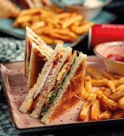 Unlike street food sandwiches, the club has an aristocratic flair, served on a plate, carefully stacked and skewered with precision. It’s an art form ! Whether couturestyle in palace bars, cozy in tea rooms, or reinvented in fusion mode, it’s become a worldwide classic. In Abidjan too, it’s an essential snack, often devoured with golden fries and a fresh juice.