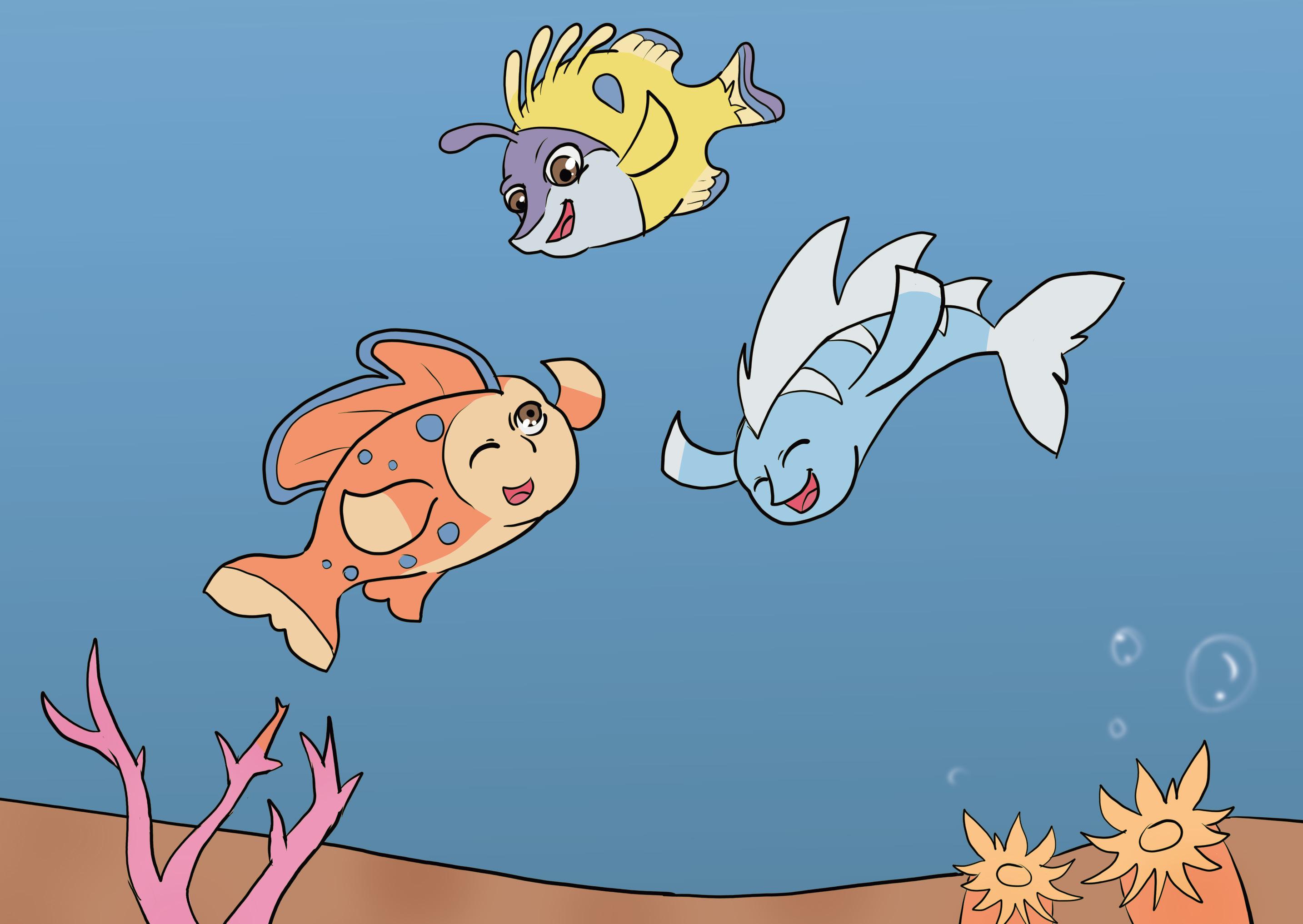 Esta pequeña aventura pasó hace tiempo en el fondo del mar. Allí habitaban muchos peces de todo tipo, pero en concreto vivían tres pececitas. Se llamaban Pi, Pa y Pu. Eran muy buenas amigas, siempre se lo pasaban muy bien juntas. Se esperaban para ir a la escuela y para volver. A veces se quedaban a dormir una en casa de la otra… Además de eso, hacían muchas travesuras, pero nunca hacían daño a nadie. Uno de esos días, como de costumbre, decidieron jugar a la pececita ciega. Un juego que a lo mejor conoces porque los seres humanos lo conocemos como gallinita ciega. ¿Te suena? Es ese juego en el que un jugador tiene que taparse los ojos y encontrar a los demás.