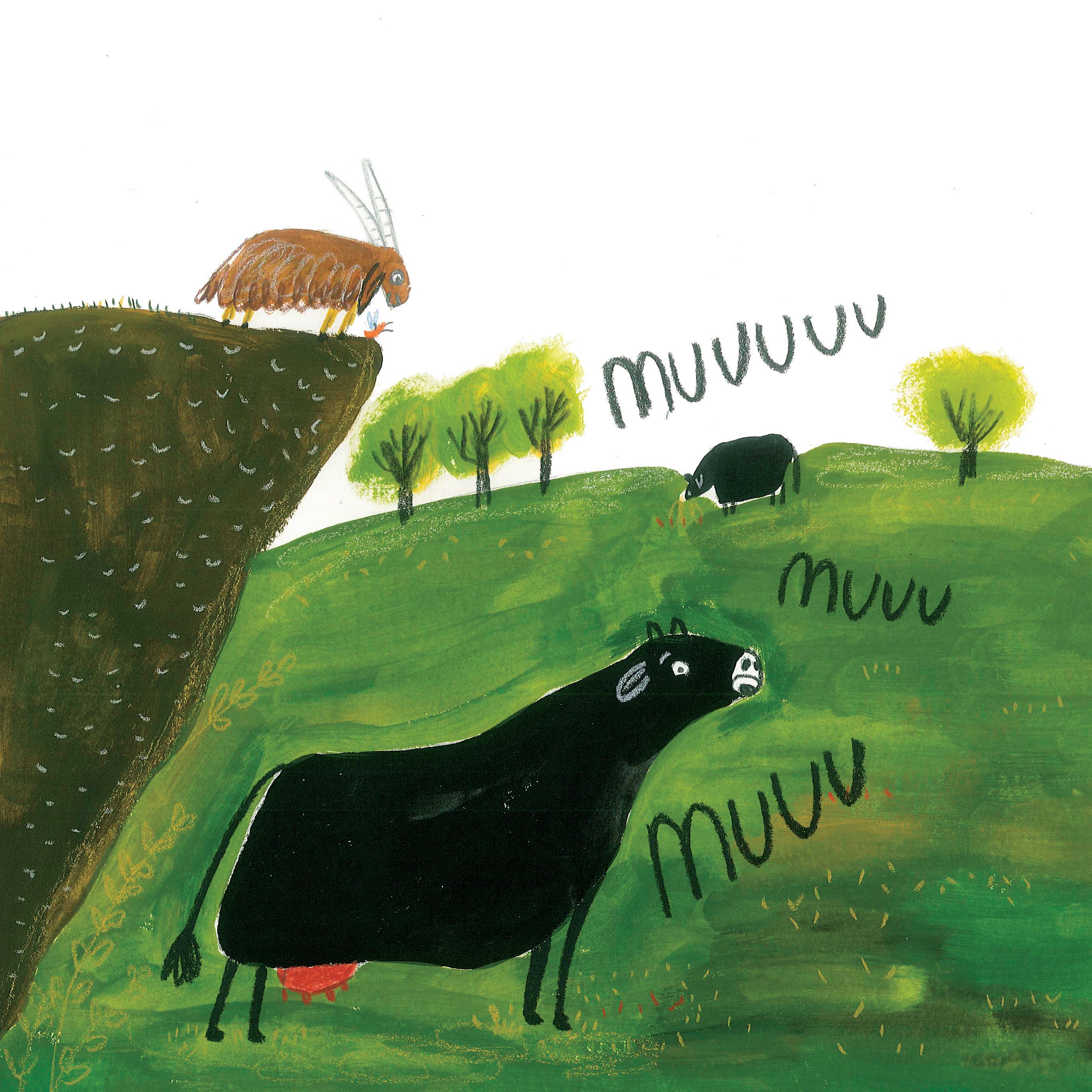 Un día, estando en la montaña, Caribú vio cómo sus amigas las vacas mugían de alegría, oía muuu por todas partes.