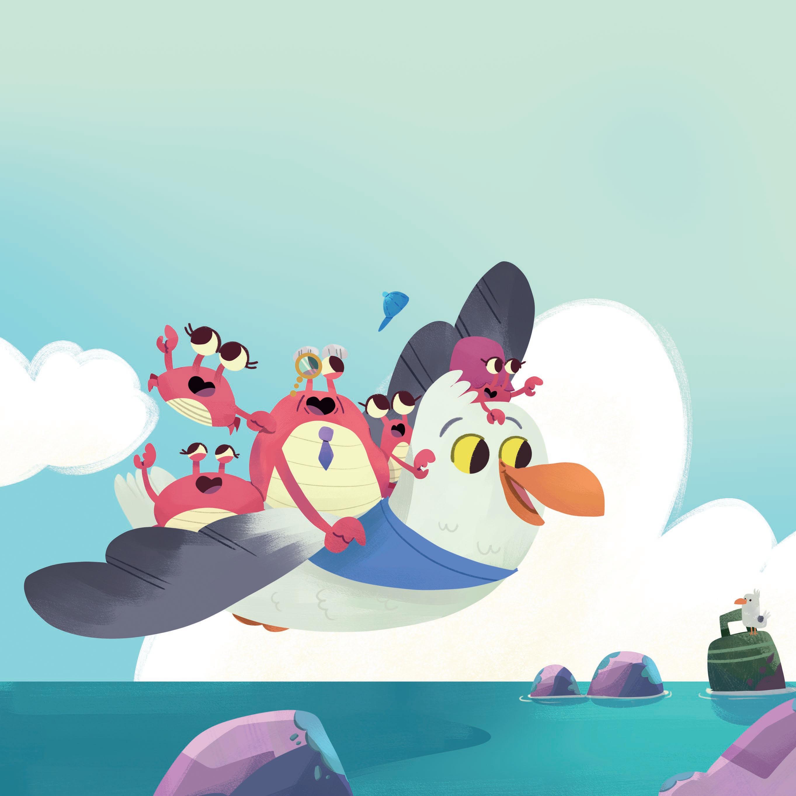 Giacomino è un gabbiano curioso e un po’ birichino che ama vivere tante avventure. Un giorno, durante una tempesta, salva Mario, un piccolo granchietto in difficoltà. Da allora diventano amici inseparabili. La storia, piena di amore e coraggio, viene tramandata ai quattro piccoli granchietti Iaia, Andy, Oppi e Nina dal loro nonno Michelangelo, che ogni sera racconta loro episodi della vita del gabbiano per farli addormentare felici e sereni.