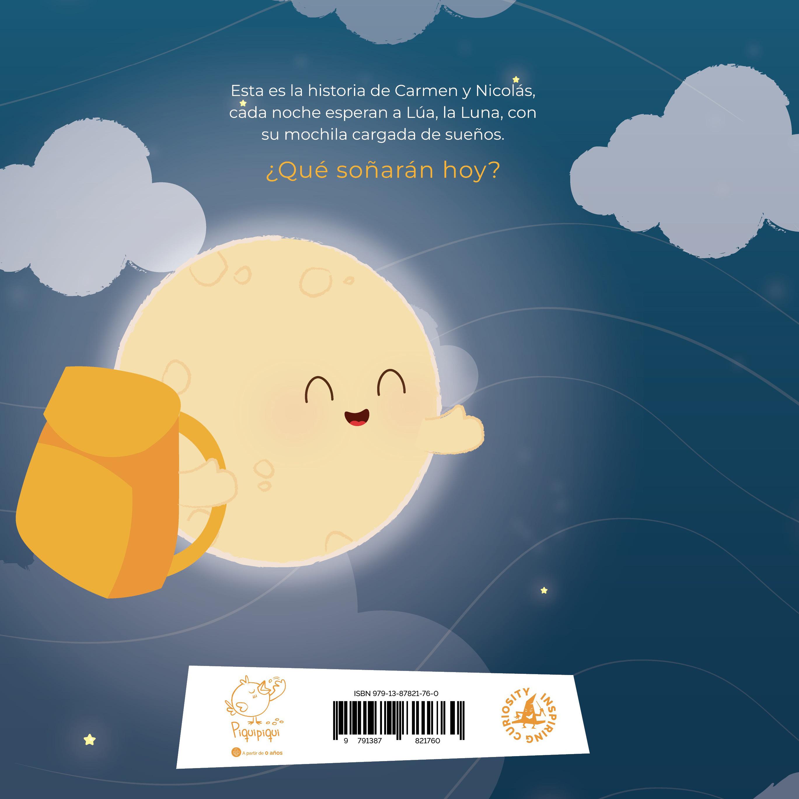 Esta es la historia de Carmen y Nicolás, de Lúa y su mochila de sueños. Cada noche, Lúa aparece en el cielo estrellado, negro e iluminado, mientras los niños siguen con sus rutinas antes de acostarse y hablan de todo aquello que quieren lograr en sus vidas. Sus sueños, al igual que los tuyos, los podrán conseguir, solo hay que creer en ellos y esforzarse para alcanzarlos.