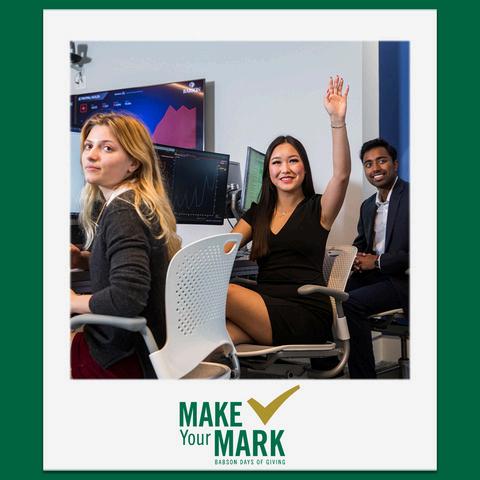 Join the Babson community from Wednesday, October 15 until Thursday, October 16 midnight EDT for Make Your Mark. We invite alumni, parents, students, faculty, staff and friends to seize the moment and help fund scholarships, student resources, academic innovation, and more