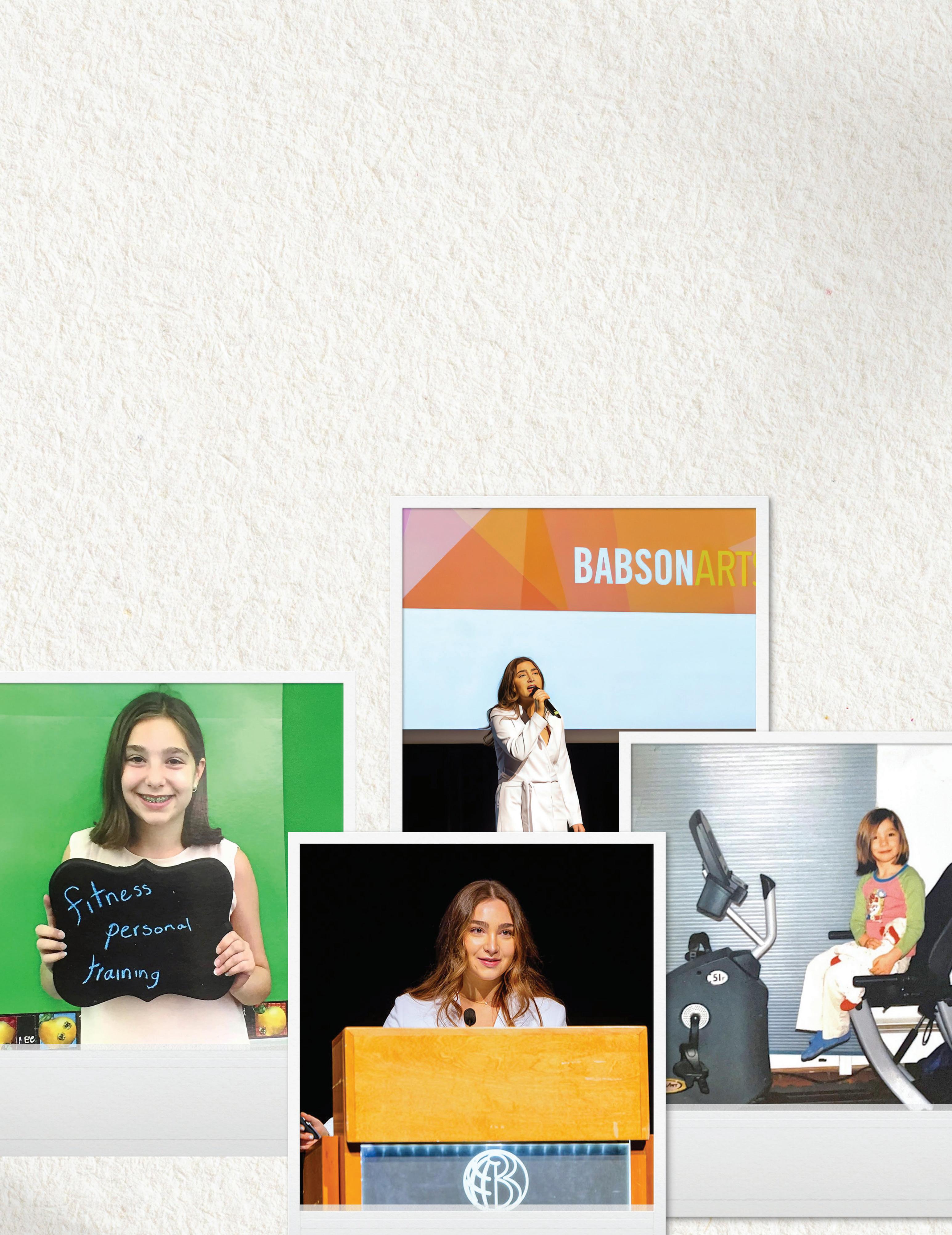 CREATED in 2006 through the generous support of Richard W. and Sandra L. Sorenson, the needs-based Sorenson Arts Scholarship is awarded to incoming first-year students with demonstrated talent who are interested in maintaining their artistic pursuits while at Babson. These students continue to develop as artists through mentorship, feedback, and structured annual projects. These projects start with an autobiographical piece, moving to exploring and expanding within and beyond their primary medium, to a capstone project that reflects the culmination of their time at Babson through their art. The Sorenson Arts Scholars Spotlight is an annual event where the scholars share their artistic process and finished project. This catalog illustrates a small part of the scholars’ journey and celebrates their commitment to their artistic development.
