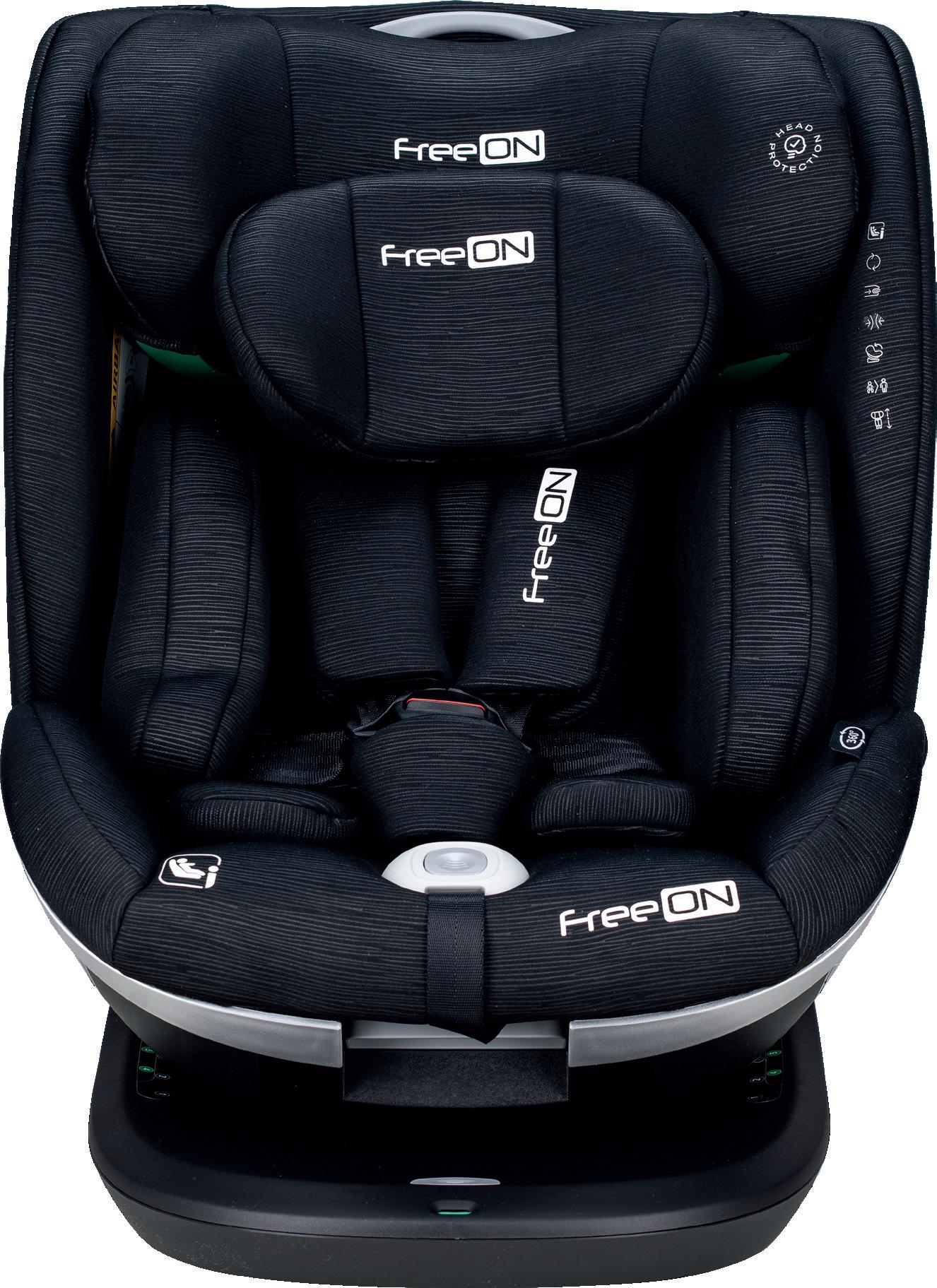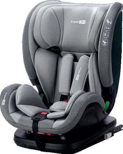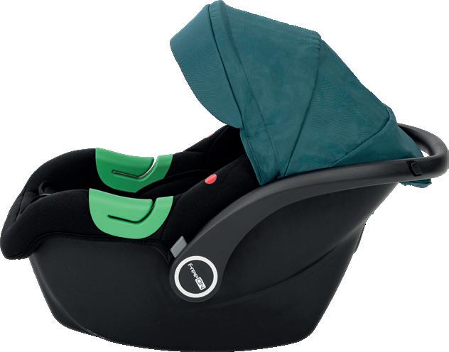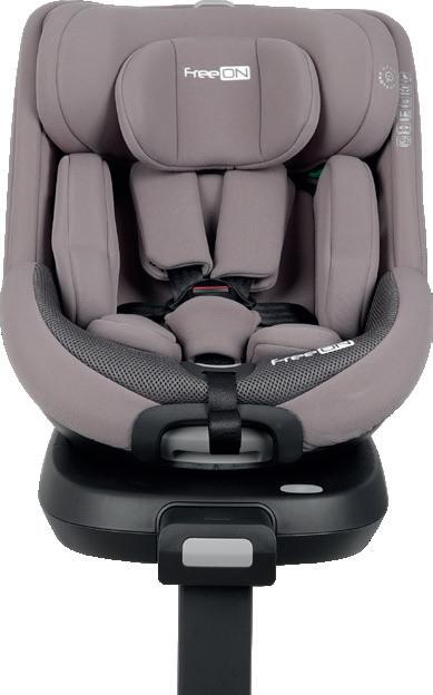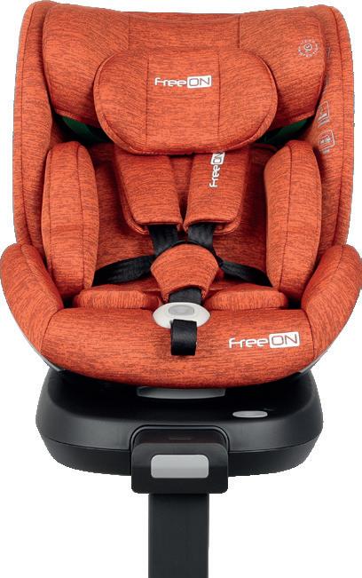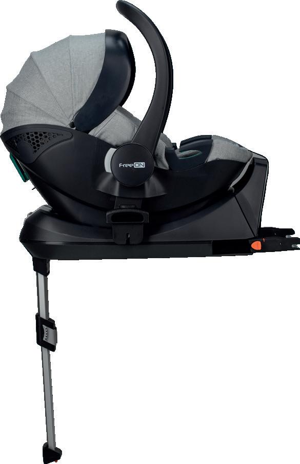 Adjustable leg rest Recline position of seating unit: 4 positions Adjustable canopy Installation: ISOFIX Standard: ECE R129 Adjustable handle Adjustable canopy Support leg Removable front eco leather bumper FreeON | 7
