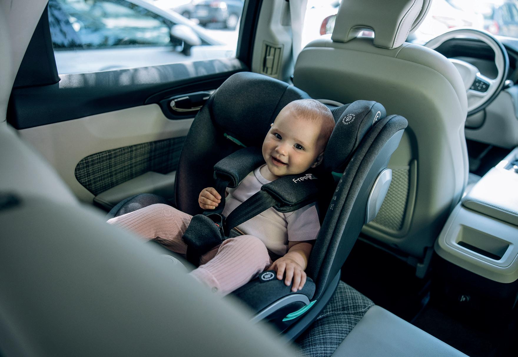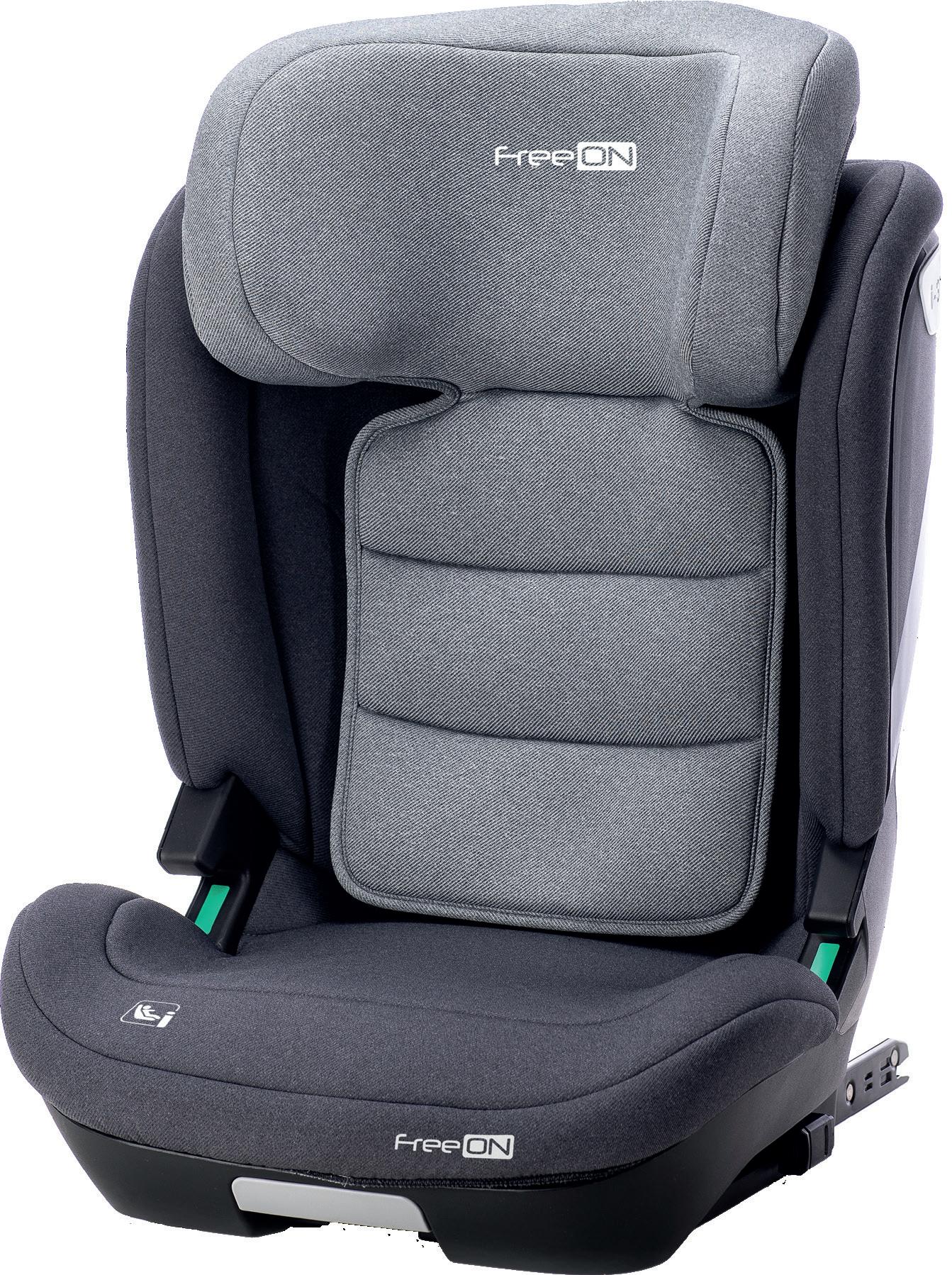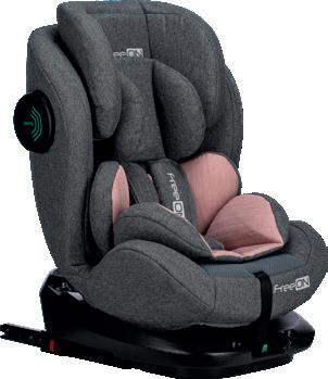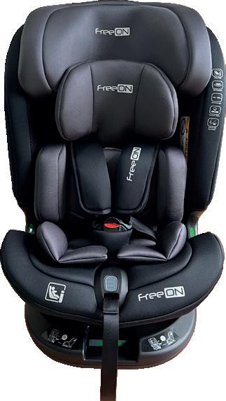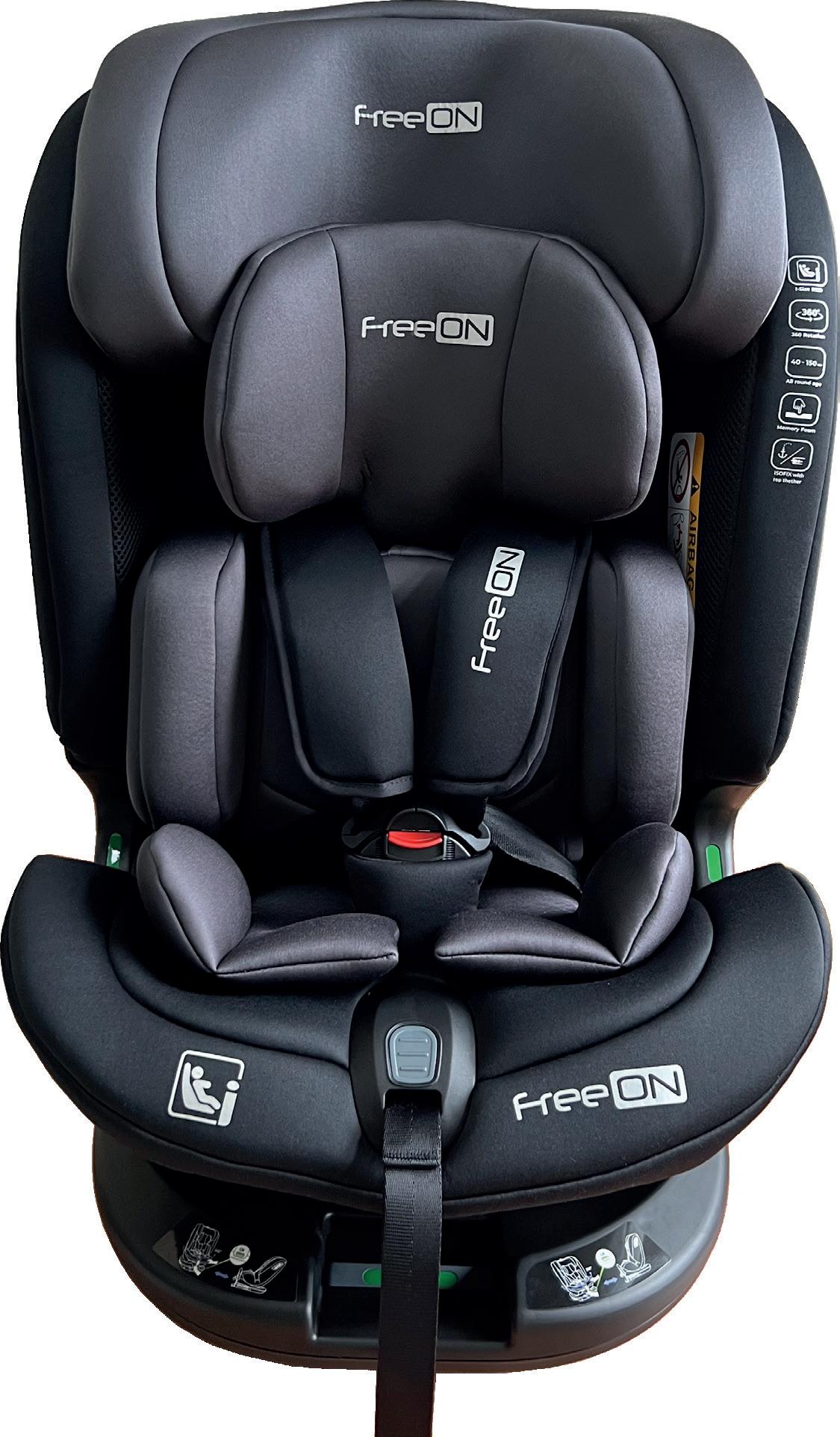 Adjustable leg rest Recline position of seating unit: 4 positions Adjustable canopy Installation: ISOFIX Standard: ECE R129 Adjustable handle Adjustable canopy Support leg Removable front eco leather bumper FreeON | 7