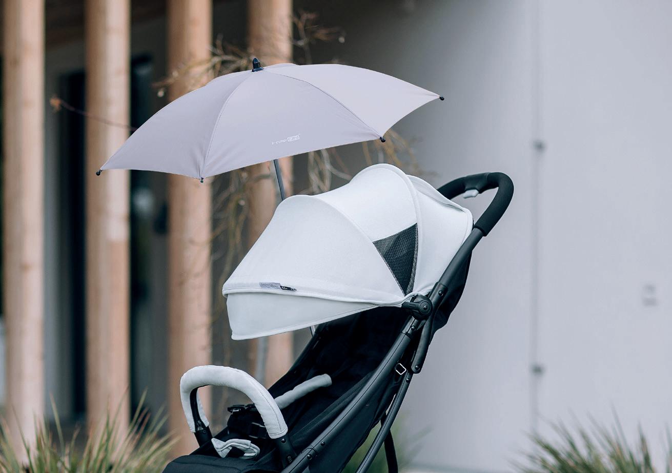 Standard: ECE R129 Adjustable canopy Adjustable handle Adjustable leg rest Recline position of seating unit: 3 positions Adjustable canopy FreeON | 15