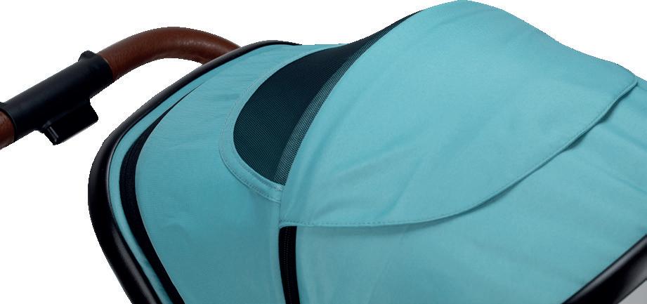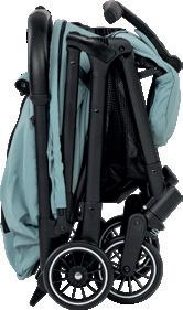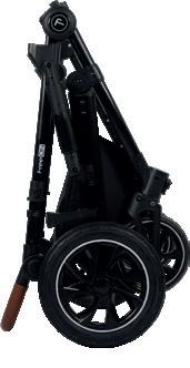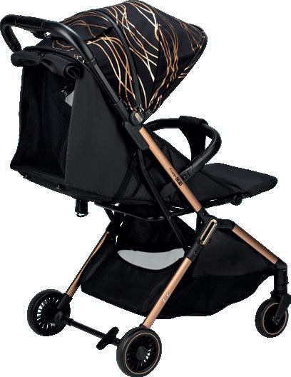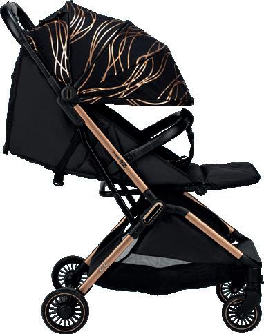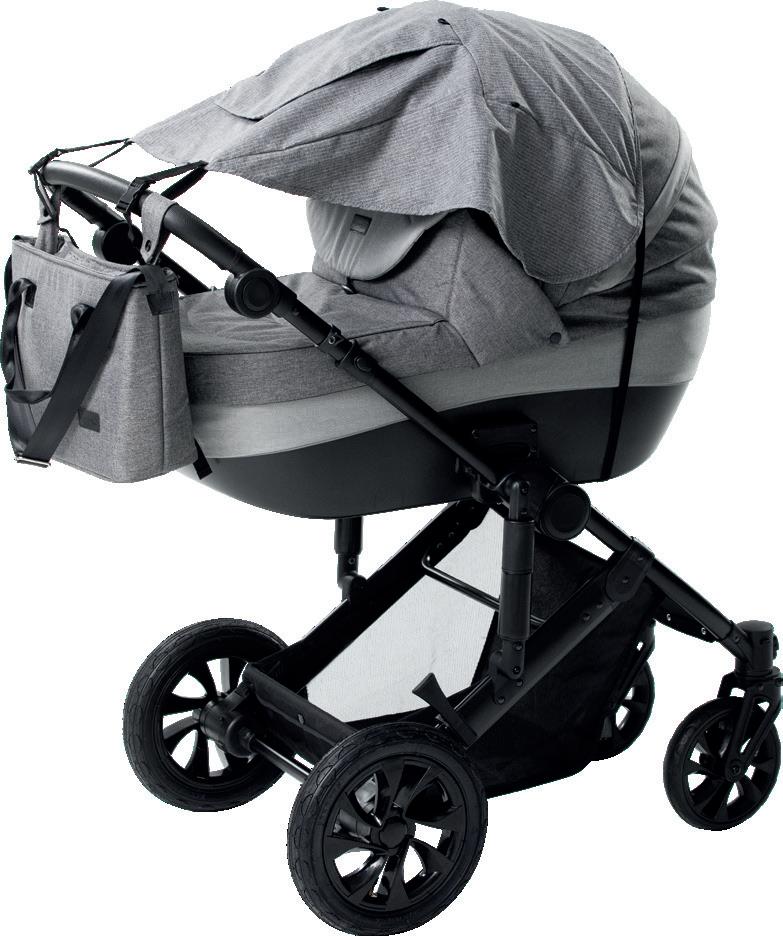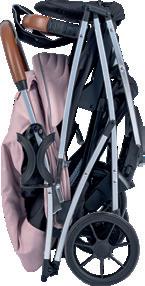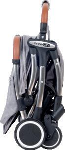 49669 49676 5-point harness system Mummy backpack Adjustable canopy Folded: 40 x 59,5 x 67 cm Unfolded: 84 x 59,5 x 103 cm Stroller weight: 10 kg Rotating front PU wheels with fixation possibility Accessories basket Aluminium frame Removable front eco leather bumper Leg brake Suspension system Adjustable leather handle