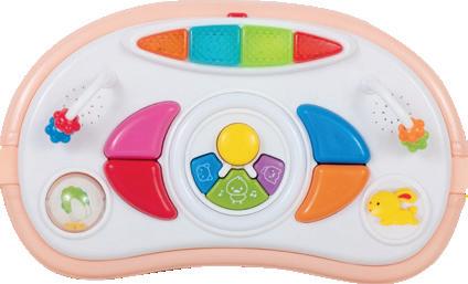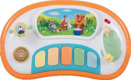 Removable and washable cover Wheels for easier moving Music play tray board with lights Adjustable height in three positions 38275