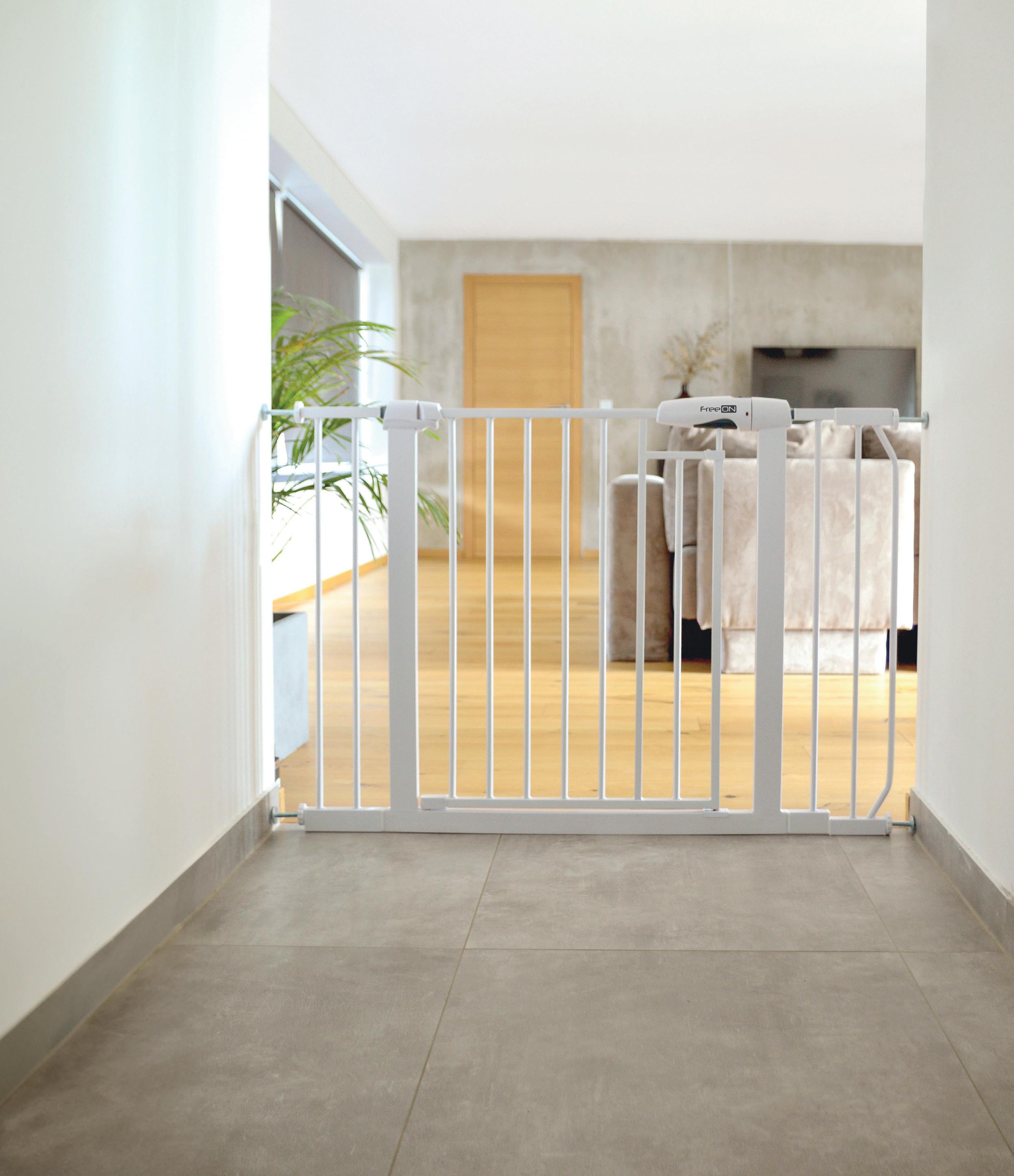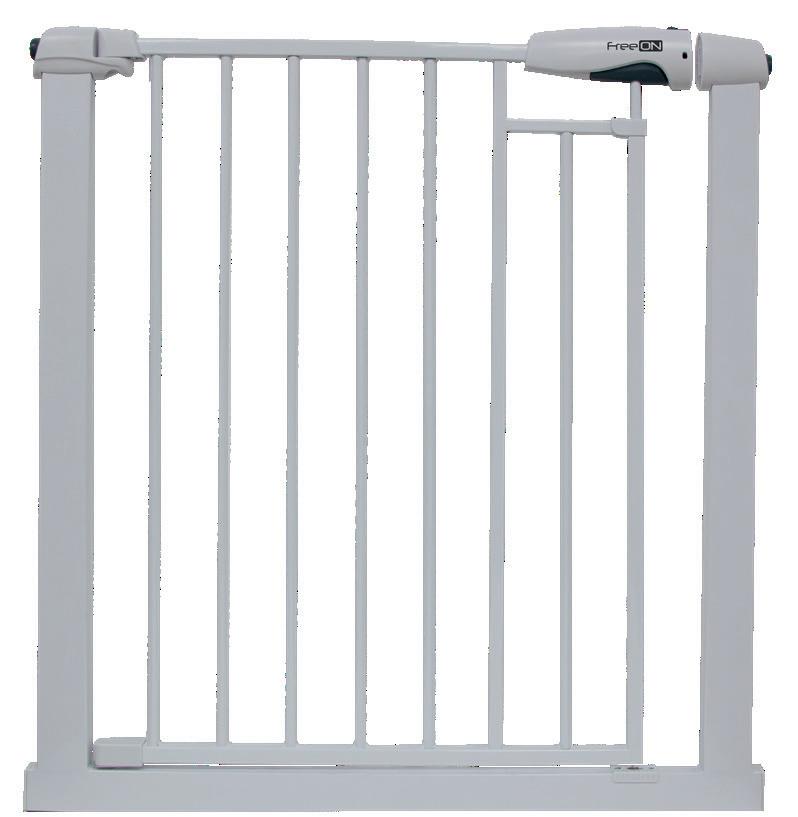 Dimensions: 76-83 x 4 x 77 cm SAFETY GATE GAMA Extandable up to 118 cm / Included 3 extensions Installation without screwing Opening on both sides One hand opening Double lock system Included 3 extensions: 7, 14 and 21 cm Automatic closing 45005 Double lock system Opening on both sides Product packaging: 1 pcs - 5 x 82 x 75 cm (7,3 kg) Outer packaging: 3 pcs - 18 x 84 x 77 cm (22, 1 kg) 152 | HOME