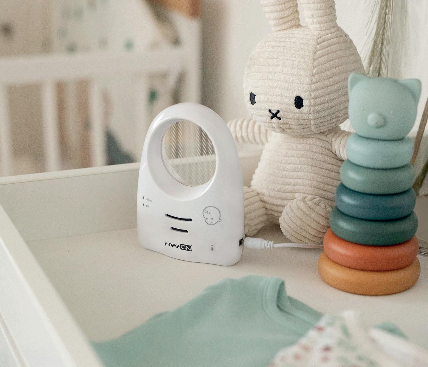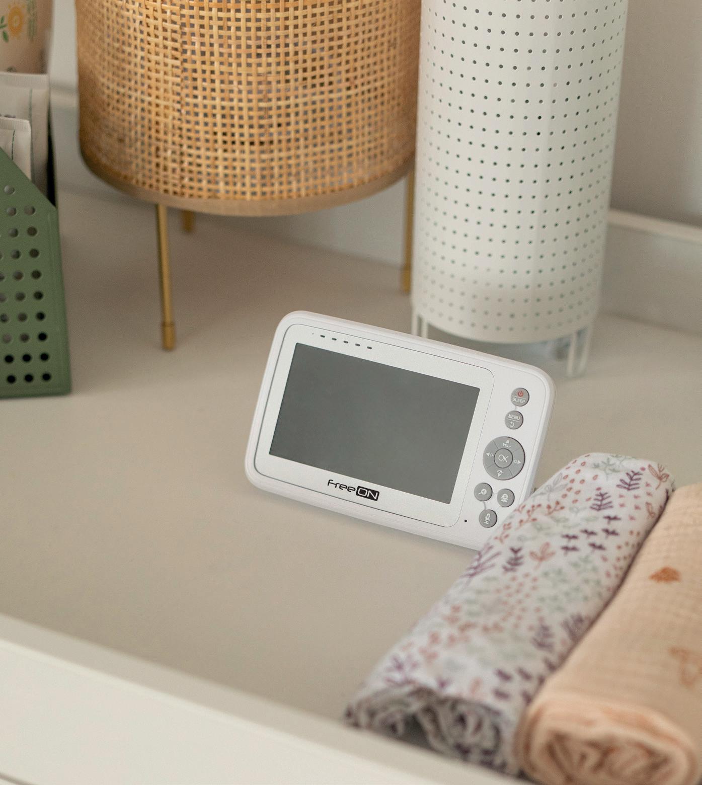 VOX function Transmission range: 250 m (in open area) Automatic infrared night vision Adjustable for various viewing angle 2-way communication 4,3’’ LCD colour screen Baby room temperature detection 3 languages Recharging funtion Volume control Battery operated (for parent unit) Out of range Silicone tube stand Recharging function (for parent unit)* *Batteries included FreeON | 155