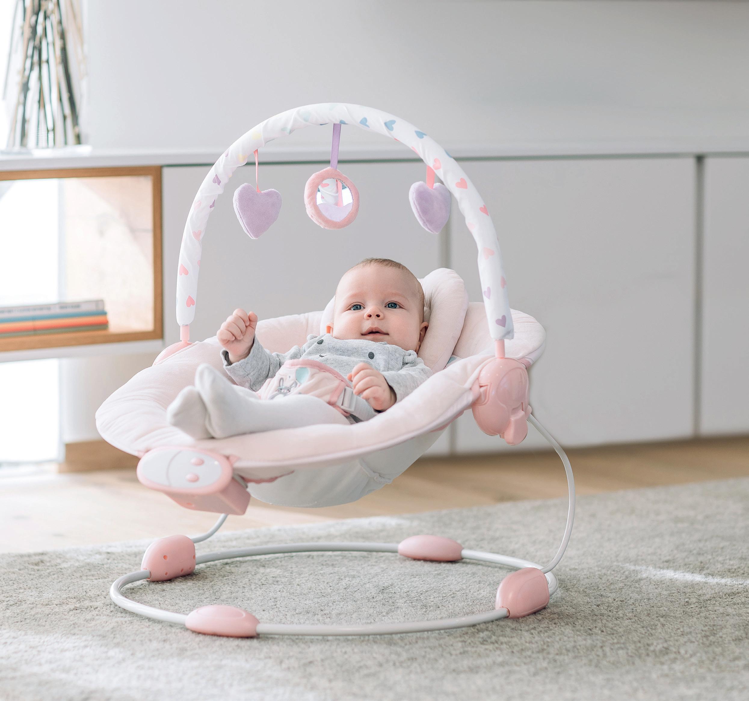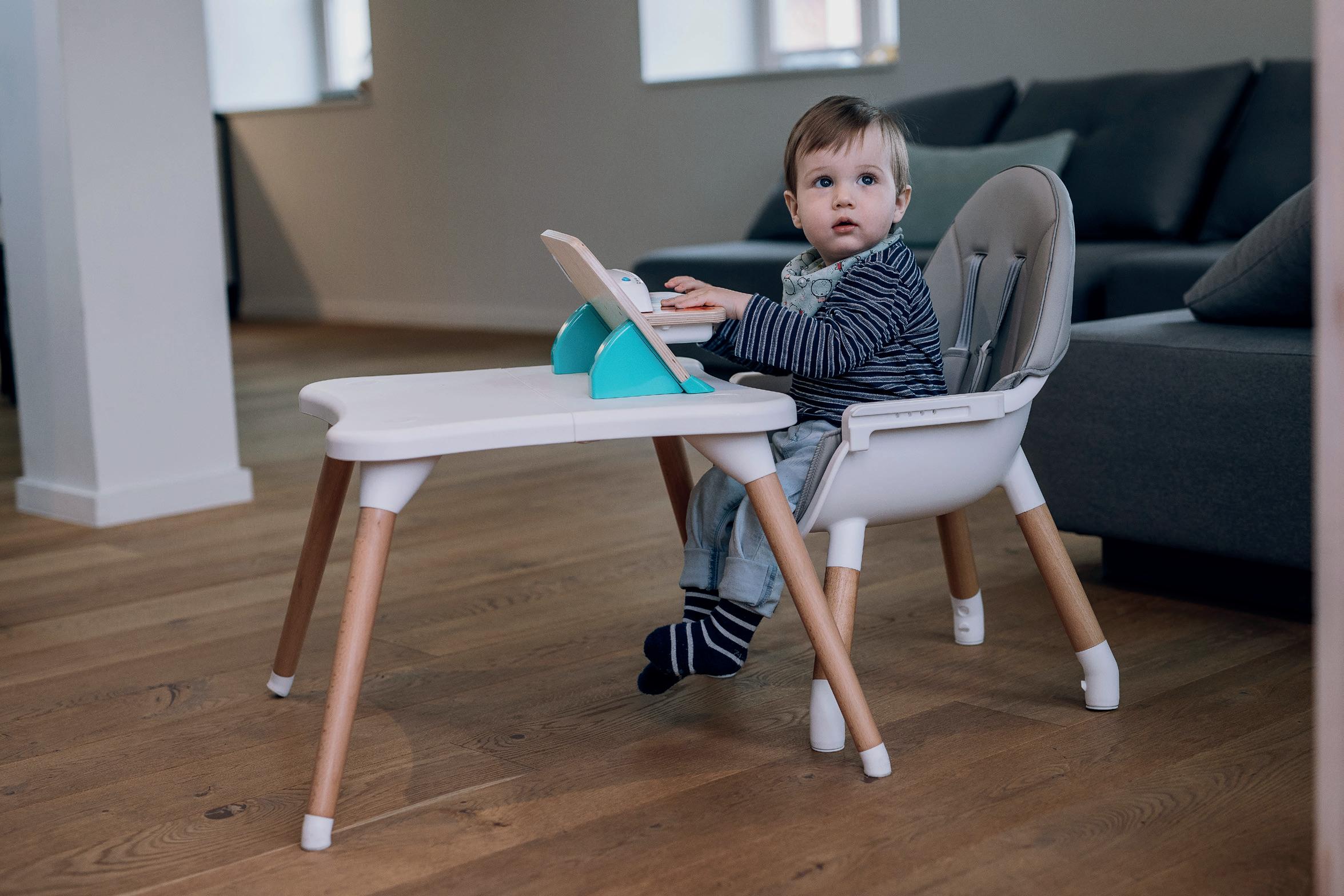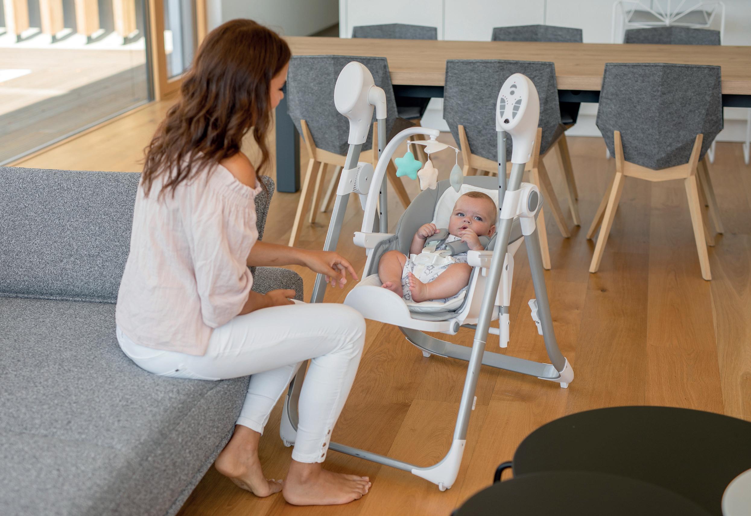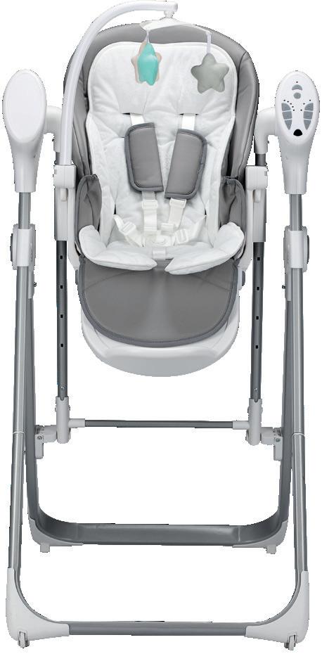 Suitable for children from birth Large storage tray (up to 7 kg) Removable and washable seat