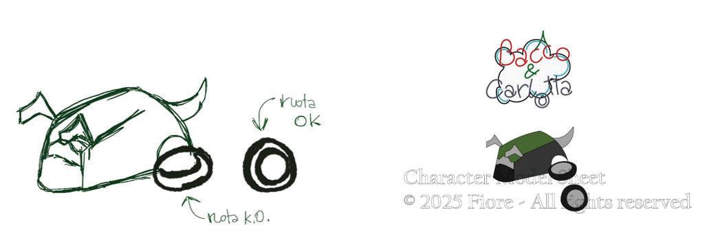 palette di colori simile. Entrambi sono ridotti all’immobilità per via di un incantesimo, ed entrambi sono solerti. Carlotta ama il lavoro, è programmata per quello, mentre Bacco adora aiutare gli altri.