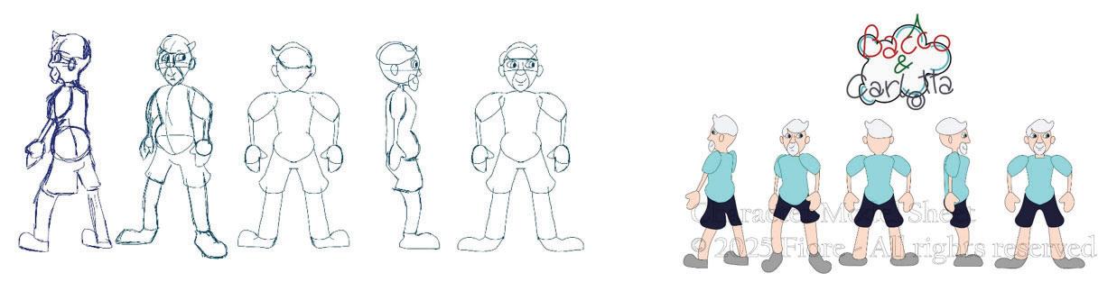 A differenza del resto del cast disegnato in 2D, entrambi i personaggi sono modelli 3d e animati su Blender.