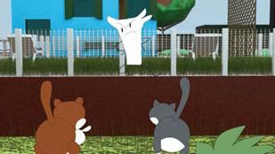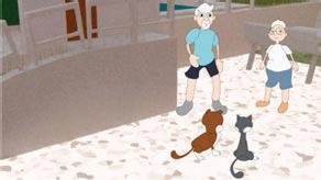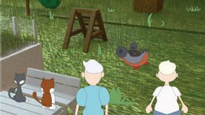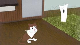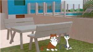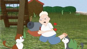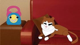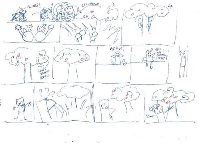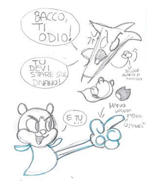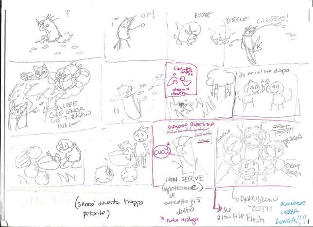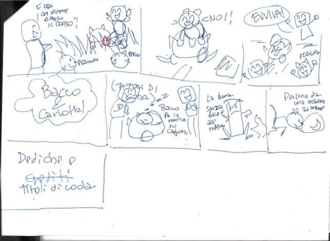getta chissà dove. All’inizio, solo Bacco e Perlina annuiscono, ma nel prodotto completo, anche i Biscotti annuiscono con loro e sullo sfondo ci sono delle ciliegie, che preannunciano il piano dei due felini. Che lo scontro abbia inizio!