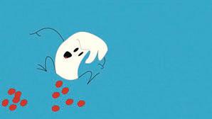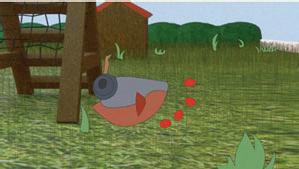 Non muore davvero, dato che è un personaggio dei cartoni, ma per il momento, è fuori gioco.