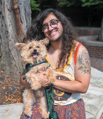 Akira Jakkson, a senior at OU studying integrated media production, has a psychiatric service dog, an 11-year-old yorkshire terrier, Loki. Jakkson had Loki trained to perform tasks that alleviate the symptoms caused by diagnosed major depressive disorder, generalized anxiety and PTSD.