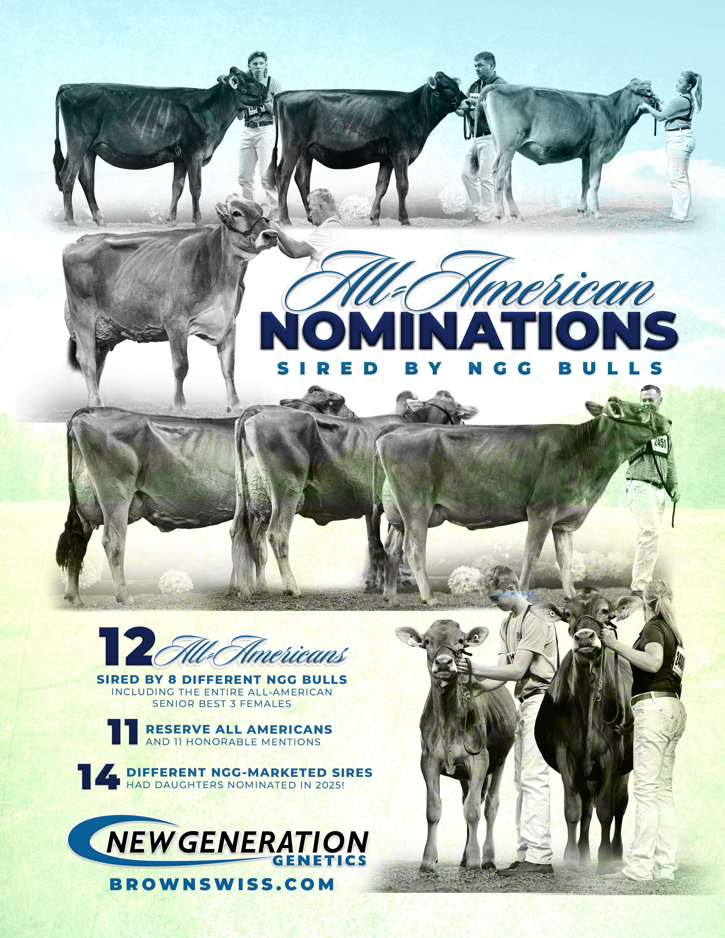 The US Brown Swiss Breeders Association recently identified BH14, a haplotype linked to early pregnancy loss, with the earliest known carrier being VENTURES ESP BABARAY (W), born in 1978. Over 6% of the US population now carries BH14. New Generation Genetics will help customers manage this risk by clearly marking carrier bulls with “BH14C” and advising careful mating to avoid pairing two carriers. We strongly encourage all breeders to use genomic testing to identify carriers within their herds, helping to minimize the risk of pregnancy loss