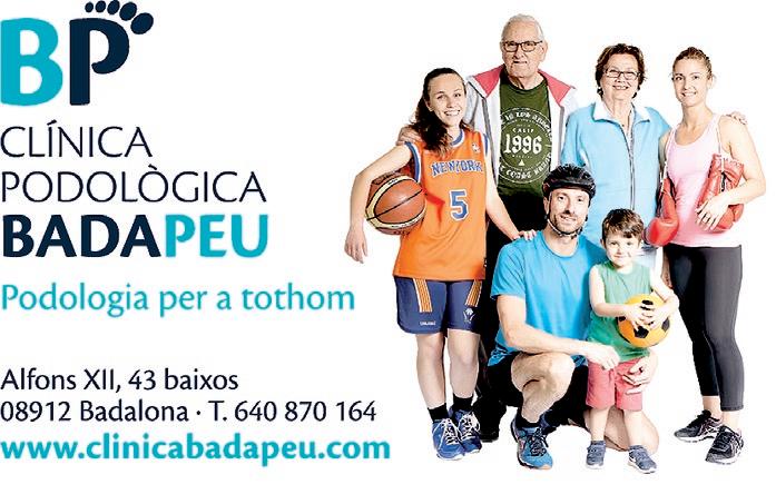 l'EnsenyamentdeGuia C. CANONGE BARANERA, 49, 1r B Tel. 609 109 211 HORARIS A CONVENIR • Anglès, Francès, Alemany, Català • Preparació títols oficials • Tots els nivells • Totes les edats • Espanyol per a estrangers IDIOMES IDIOMES � Anglès, francès, alemany, català � Preparació títols oficials � Tots els nivells � Totes les edatsREFORÇ 686C.Prim,ESCOLAR73BADALONA248024/609109211• Primària, ESO, Batxillerat • Totes les assignatures REFORÇ ESCOLAR CLASSES INDIVIDUALS O EN PETIT GRUP C/ Sant Ramon, 7 9 (93)3992204 www leeyoungbadalona com Karate Kyokushinkai Taekwondo Haidong Gumdo ESCOLA D’ARTS MARCIALS LEE YOUNG BADALONA C/ Sant Ramon, 7 9 (93)3992204 Karate Kyokushinkai Taekwondo ESCOLA D’ARTS LEE YOUNG C/ Sant Ramon, 7 9 (93)3992204 www leeyoungbadalona com Karate Kyokushinkai Taekwondo Haidong Gumdo ESCOLA D’ARTS MARCIALS LEE YOUNG BADALONA C/ Sant Ramon, 7 9 (93)3992204 www leeyoungbadalona com Karate Kyokushinkai Taekwondo Haidong Gumdo ESCOLA D’ARTS MARCIALS LEE YOUNG BADALONA ® LEE YOUNG BADALONA SETEMBRE I OCTUBREMATRÍCULA GRATUÏTA DIETES ACONSEGUIRENTRENAMENTSIPERSONALSPERELSTEUSOBJECTIUSTAMBÉON-LINE C. Sant Pau, 13 · 692 421 didacrodriguez.ep@gmail.com212Drentrenadors NOU CENTRE FITNESS