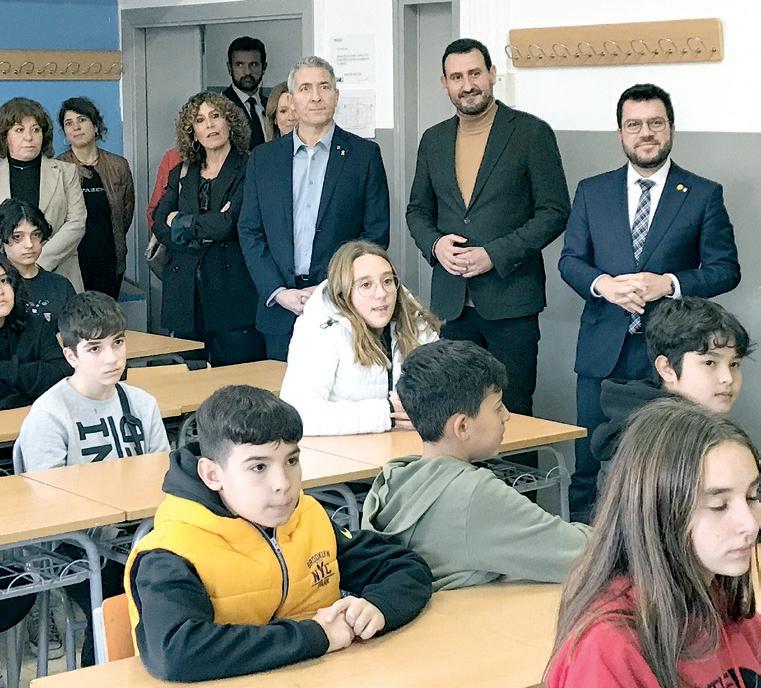 El president de la Gene ralitat de Catalunya, Pere Aragonès, i el conseller d'Educació de la Gene ralitat, Josep GonzàlezCambray, acompanyats de l'alcalde, Rubén Gui jarro, van visitar dimecres l'Institut Pompeu Fabra, situat al carrer Molí de la Torre.