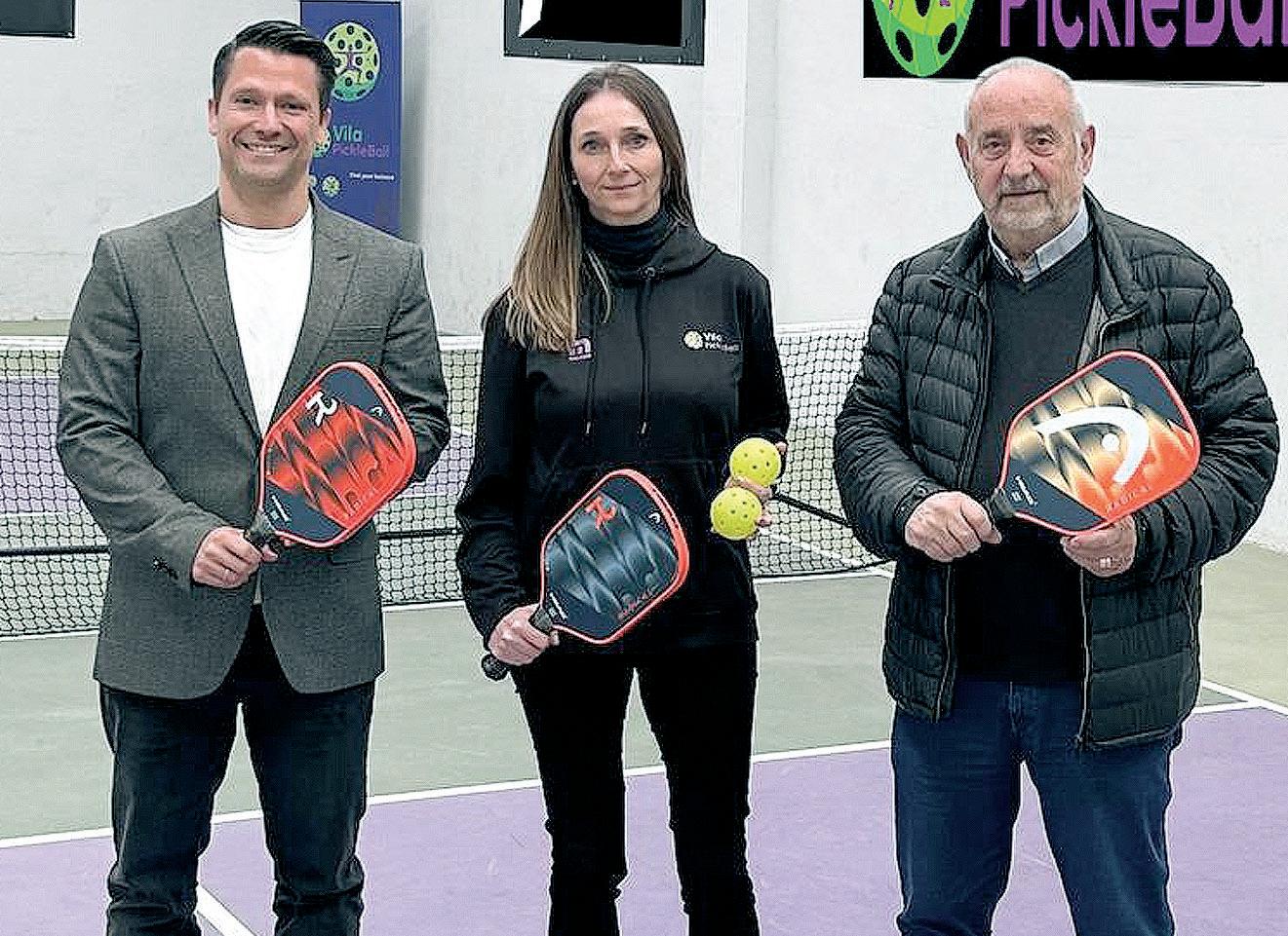 L'alcalde, amb els empresaris Enrique Tomás i José Elías, potencia la marca Badalona a la Fira