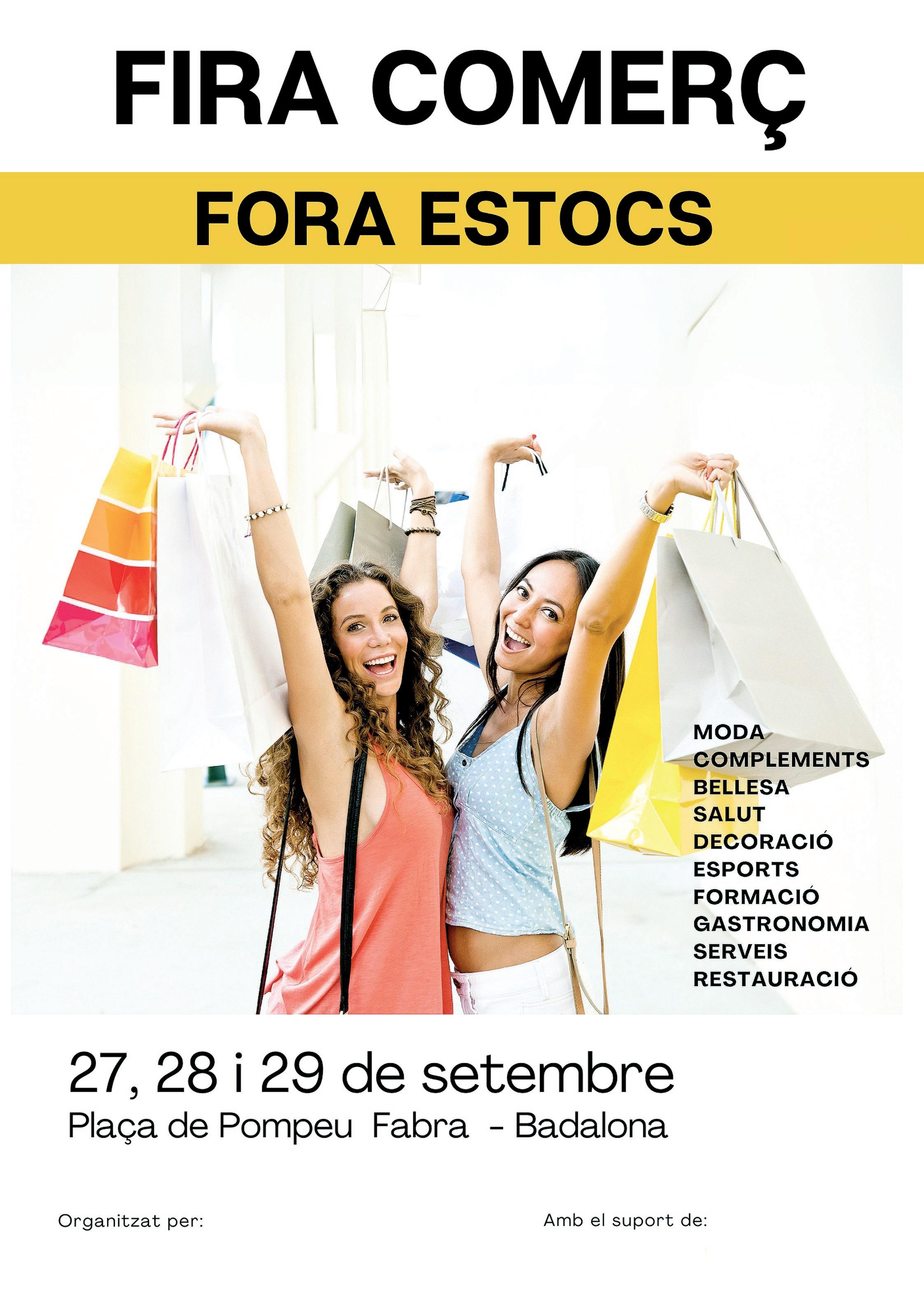 La Federació de Comerciants de Badalona celebrarà els propers dies 27, 28 i 29 la cinquena edició de la Fira Comerç Fora Estocs, que estarà a la plaça Pompeu Fabra. Aquesta esperada mostra aplega més de 50 establiments de diversos àmbits, així com representants del sector gastronòmic i de la restauració local perquè els assistents puguin recuperar forces mentre exploren l'oferta comercial.