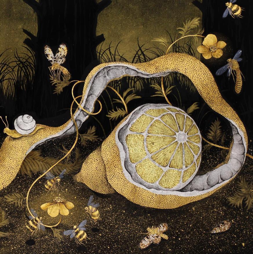 T: I’m Tuesday Riddell, a Londonbased artist, and I practice a technique called Japanning, an endangered 17th century form of European lacquer work. I use this technique to create artworks that explore the forest floor, inspired by the Sottobosco painters of the 17th century.