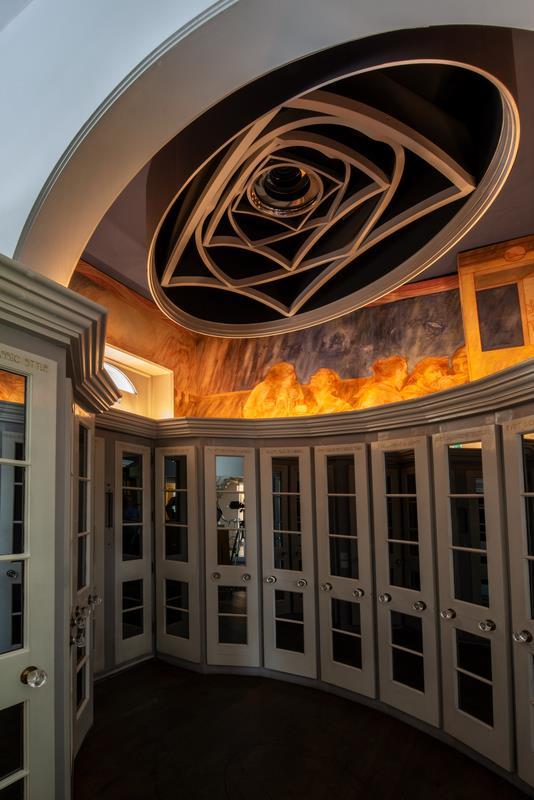 In June of this year, BADA Friends had the rare privilege of taking a tour of The Cosmic House, first opened to the public in 2021. Since then, it has operated as a house museum by the Jencks Foundation, with exhibitions, residencies, and new art projects that revolve around the reinterpretation of The Cosmic House and Charles Jencks’ archive. On their arrival, the exterior seemed to be a very traditional 1840s white stucco townhouse, like so many in Notting Hill However, on entering, they realised that the house is anything but traditional The Cosmic House is one of the key landmarks of Post-modernist architecture Having been built between 1978 and 1983, the building is described as a microcosm of contemporary architectural theory, semiotics and history What I am interested in however, is how the building and its creators have illustrated and since, demonstrated the considerable impact architecture can have on the body. The building, with its fragmented interiors and post-modern design, considers the human body and its interactions with its immediate spatial relationships, alongside a wider consideration of the human race within the cosmos. Its creators, Charles and Maggie Jencks alongside architect Terry Farrell, have injected personality, ideas and tools into the house as a means of communicating the history and potential of architecture. The house, was and still is a social place, in which ideas can be generated amongst friends, collaborators and artists.