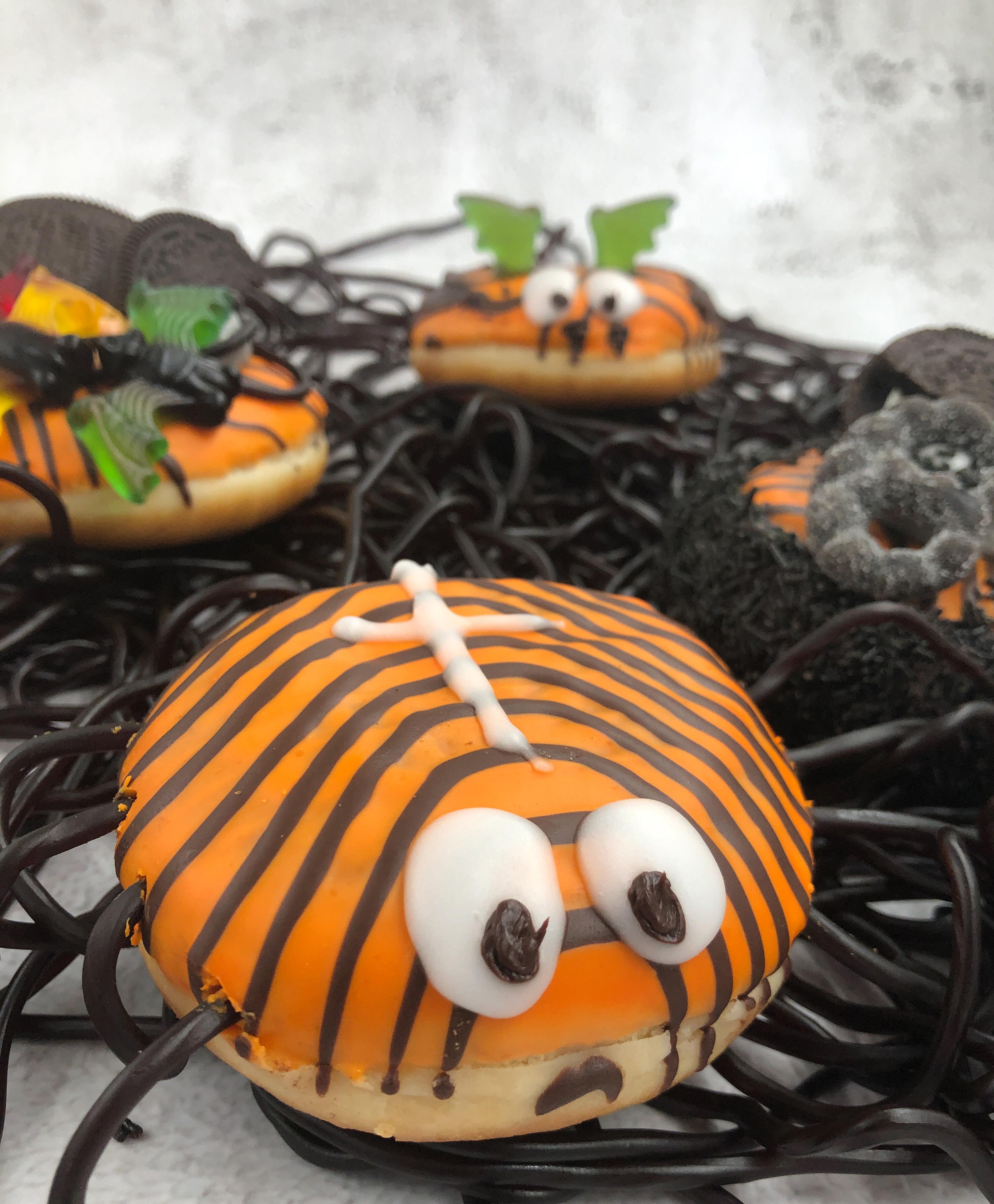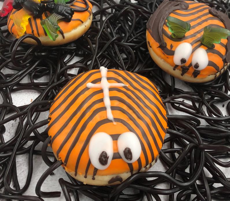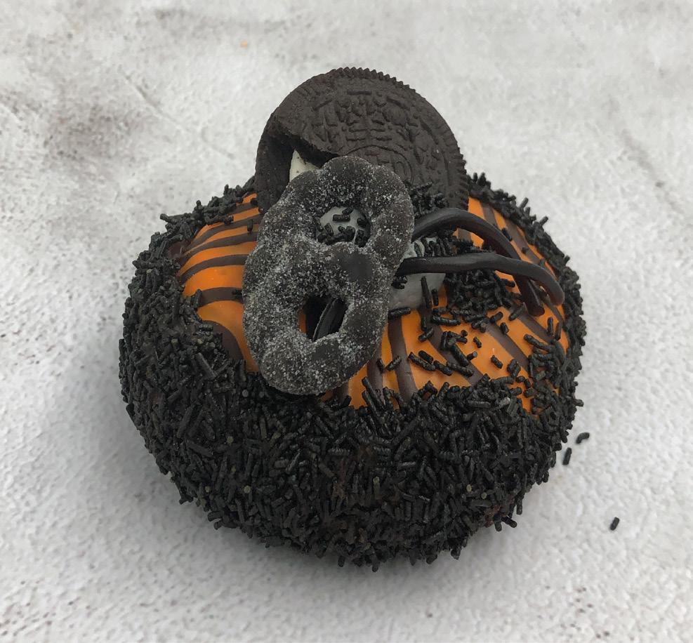 410706 48 stk. Halloween Donut med orange glasur og flagermus krymmel NYHED