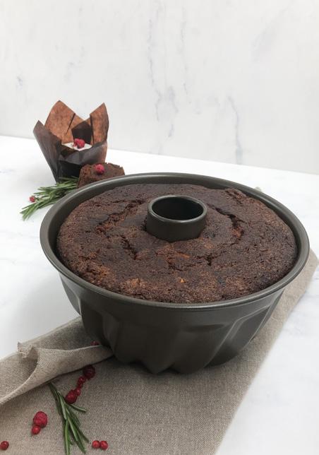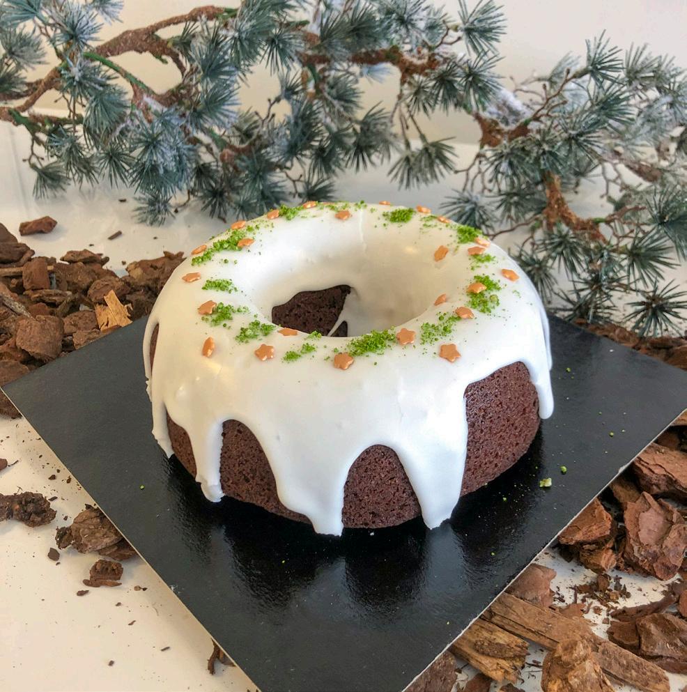 En base med dyb chokoladesmag og med et tvist af orange. Grundopskriften her kan bruges til at lave en julelagkage med smørcreme, muffins med fx appelsinfyld og en rund julekrans med sne og glimmer på. Nemt at gå til og ser yderst vinter- og juleagtigt ud i din disk.