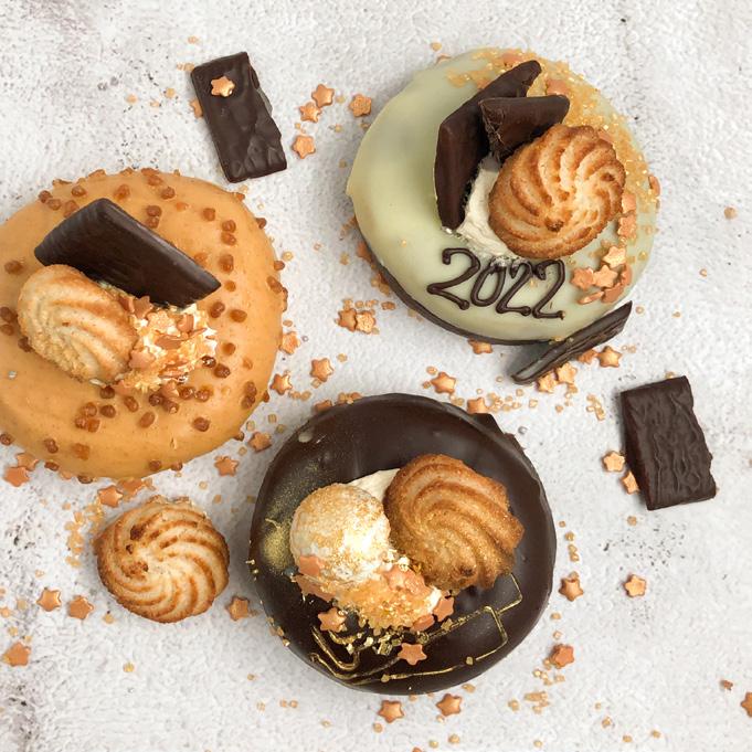 På årets sidste aften, skal der festes og fejres hele dagen, aftenen og natten. Alt fra salte og søde snacks, brød, tapas, lette anretninger, desserter, kage, petit fours, chokolade, natmad, grissinni og til kransekage skal man selvfølgelig kunne købe hos sin lokale bager. Snack produkterne på billedet her er fra Puratos.