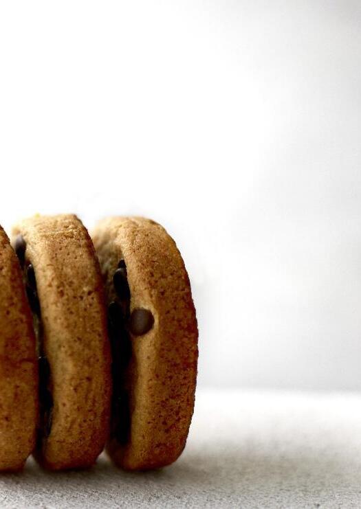 Tegral Satin Creme Cake og Mimetic Primeur 5% køres sammen med dejkrog til en sandet konsistens. Tilsæt de øvrige ingredienser og kør sammen til en homogen dej. Dejen vejes af på 15 g. stykket. Trykkes let flade. Bages ved ca. 170°C i ca. 10 min.
