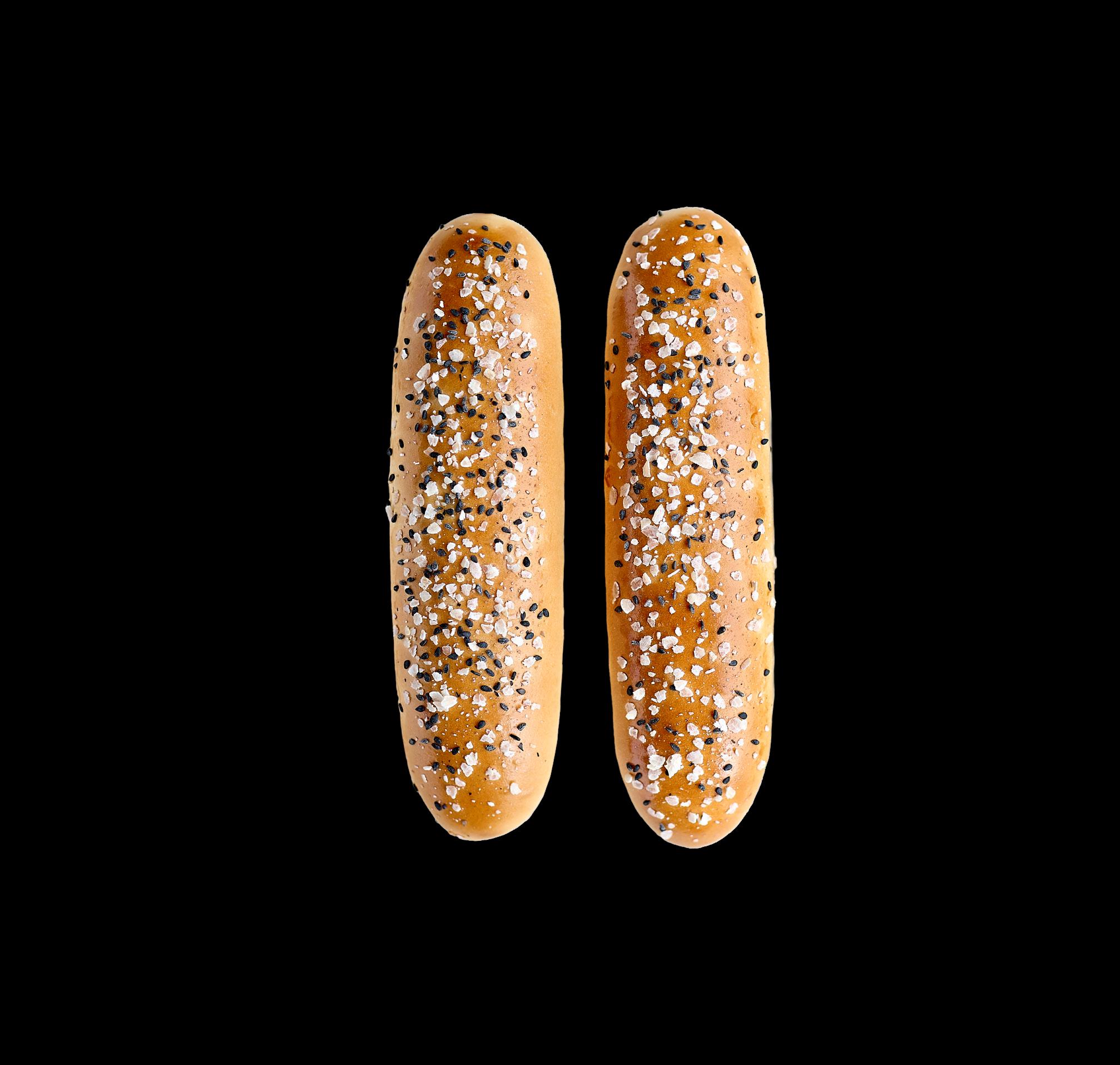 Skæres ud på 5x10 cm. Stryg med Sunset Glaze på toppen og drys dem i GrainDesign Black&White. Læg dem på en smurt plade.