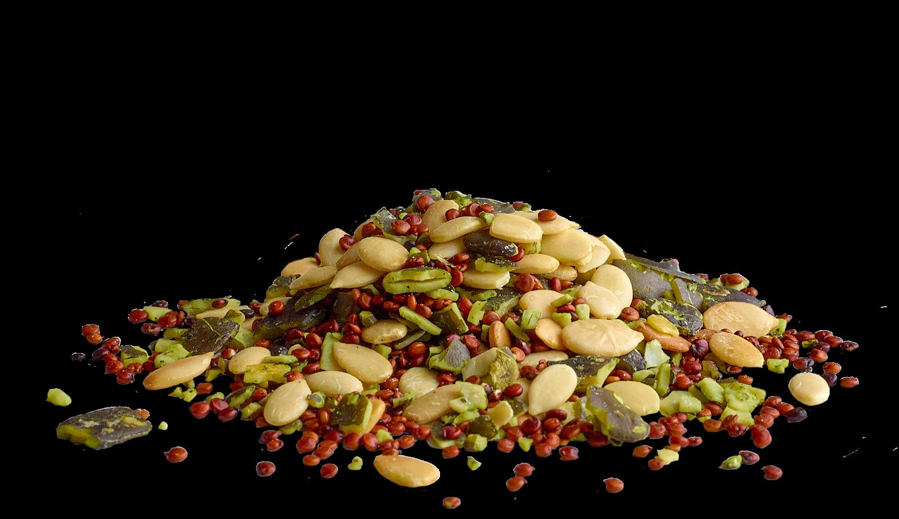 Dekoration før bagning Stryges med Sunset Glaze og drysses med GrainDesign Black&White.