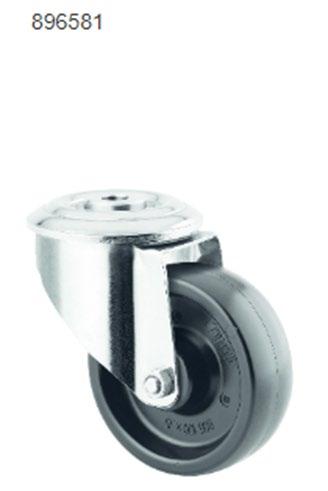 896579 – Tenget stikvognshjul gummi m. gaffel 4-huller - Skaffevare