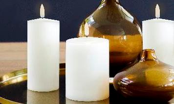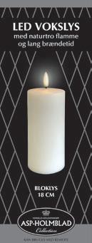 Bloklys og stagelys er begge med ny væge- og flammeteknologi. Fremstår meget realistisk i forhold til levende lys.
