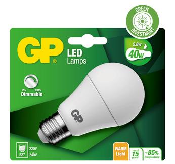 15 BATTERI GP ULTRA PLUS ALKALINE Varenr. Beskrivelse Mærke Indhold pr. krt. 118972 AA 15AUP/LR6 Bulk 20 pk. × 2 stk. 118973 AAA 24AUP/LR03 Bulk 20 pk. × 2 stk. 118975 D 13AUP/LR20 Bulk 10 pk. × 2 stk. 118976 C 14AUP/LR14 Bulk 12 pk. × 2 stk. 115454115455 BATTERI GP SUPER Varenr. Beskrivelse Indhold pr. krt. 115455 AA, 4-pak 10 pk. × 4 stk. 115454 AAA, 4-pak 10 pk. × 4 stk. 118972 118973 118975 118976 LIGHTERE Varenr. Betegnelse Indhold pr. krt/pk. 117091 Lighter, Flexi, hovedopladning m/USB stik, ingen gas, assorterede farver 12 stk./pk. 116061 Lighter, Madrid Flexi, assorterede farver 3 × 32 stk. 105485-1 Lighter, Zapp Flexi, assorterede farver 4 × 40 stk. 117085 Lighter, multifunktionel turbobrænder, stor model, sort 6 stk./pk. 117084-2 Lightergas, Butan, 300 ml 6 × 12 stk 117091 117085 117084-2105485-1 LIGHTERE, BATTERIER & LED PÆRER Spar på strømmen SKIFT TIL LED PÆRER Varenr. Beskrivelse Indhold pr. pakke 115615-1 LED globepære GP Classic, E27, 5,8W (svarer til 40W), 2700K, 470LM, varmt lys, dæmpbar 1 stk. 116854 LED globepære GP Classic, E27, 9W (svarer til 60W), varmt lys 1 stk. 115616-1 LED reflektorpære GP, GU10, 5W (svarer til 50W), 2700K, 345LM, varmt hvidt lys 1 stk. 115615-1 115616-1116854 LED-reflektorpæren kan anvendes i alle rum og passer glimrende til både funktions- og stemningsbelysning. Effektiviteten er