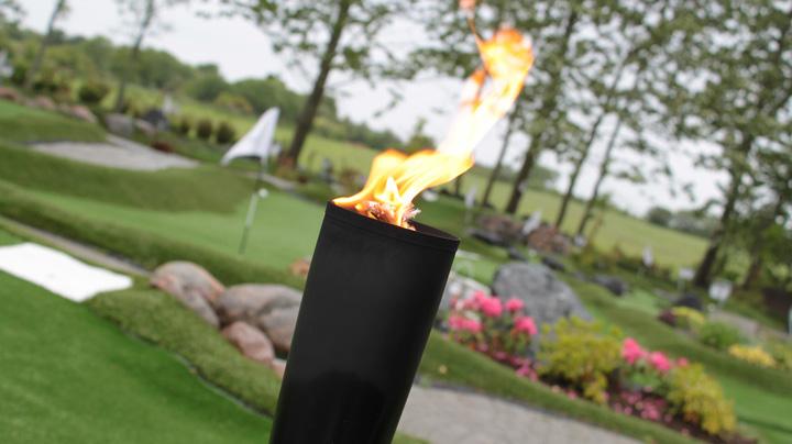 anvender 2 stk. AA batterier, varenummer 115455, og har med disse en brændetid på op til 350 timer.
