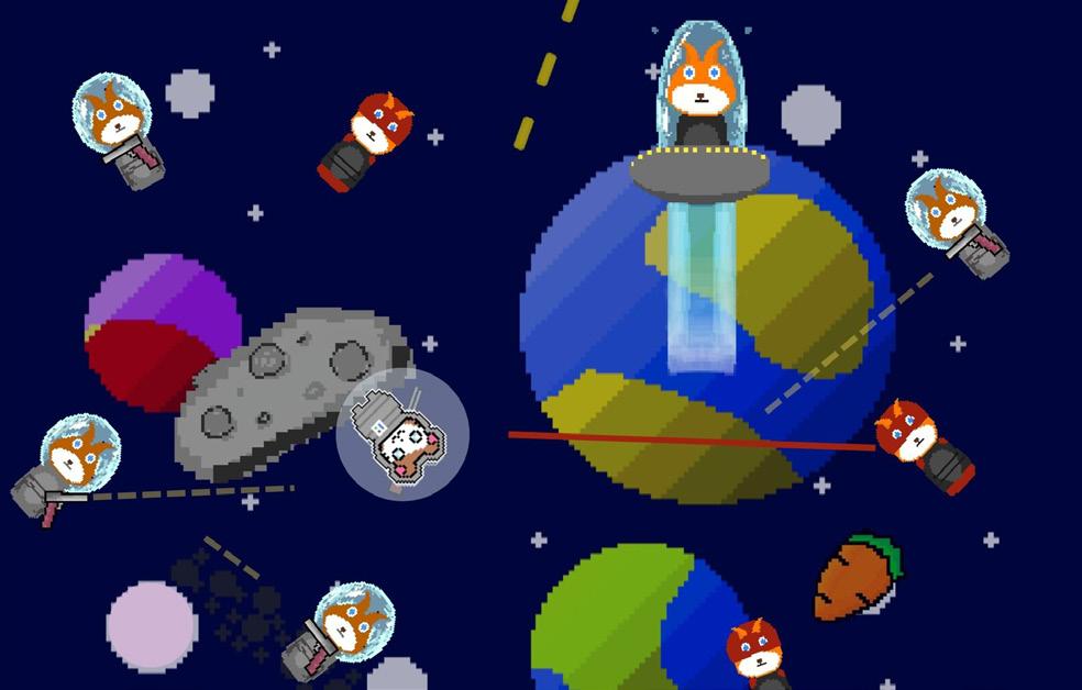 Space Hamsters sees Hammy, the first hamster astronaut from planet Hammon, shot out of a nuclear potato cannon into space. Your task is to explore space, while avoiding being shot down and captured by hungry foxes. Armed with upgradeable weapons and relaying on floating carrots for sustenance, Hammy uses a jetpack to navigate across asteroids with varying gravities. The game, with colourful pixel art, gets harder as you play, introducing tougher enemies and strategic upgrades every minute. With no levels, players strive for survival, facing scout foxes, snipers, and more. This is a game where you do not win but you get as far as you can before it’s game over!