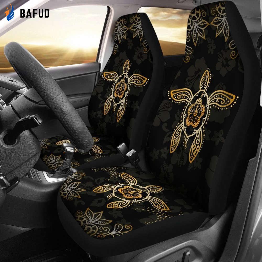 Featuring a stunning golden turtle and vibrant hibiscus flowers, these seat covers will instantly upgrade the look of your car's interior. Made with high-quality materials, they are durable and will withstand everyday wear and tear, ensuring long-lasting usage.