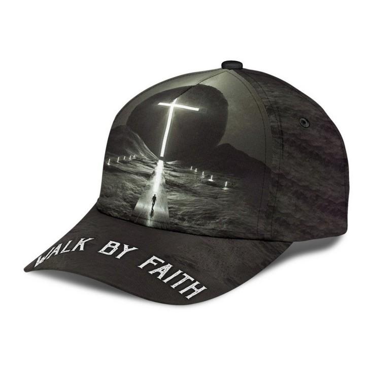 Invest in this cap today and experience the value it offers. It’s not just a cap – it’s a testament of your faith, a conversation starter, and a powerful reminder that you are never alone on your journey. Join the movement and let your faith shine with the Jesus Walk By Faith Classic Cap All Over Print.