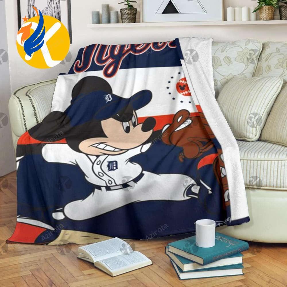 Mickey Mouse Detroit Tigers Baseball In Navy And White Christmas Throw 3D Full Printing Blanket - Blanket Home Decor Gift