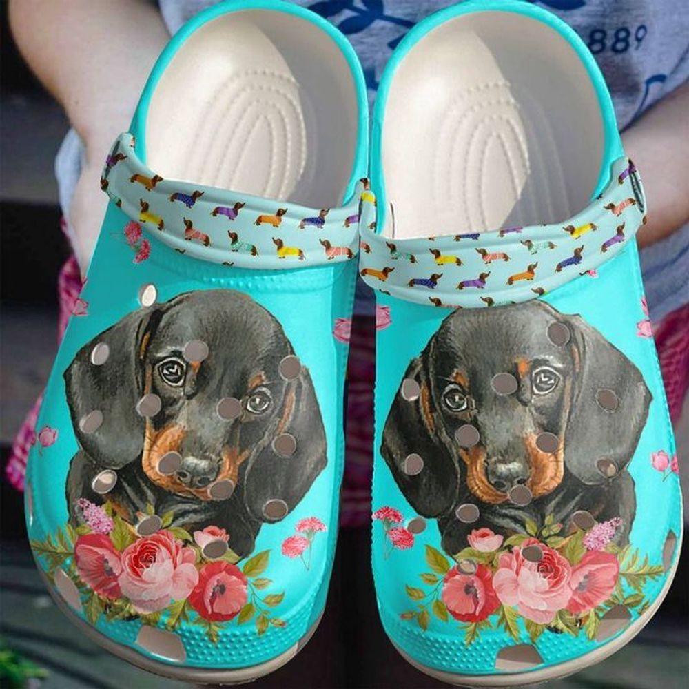 Introducing the Croc Shoe - Clog Shoe Dachshund Flower Black, a must-have footwear for all the Dachshund lovers out there! This unique shoe combines style, comfort, and a touch of adorable Dachshund charm, making it the perfect addition to your shoe collection.