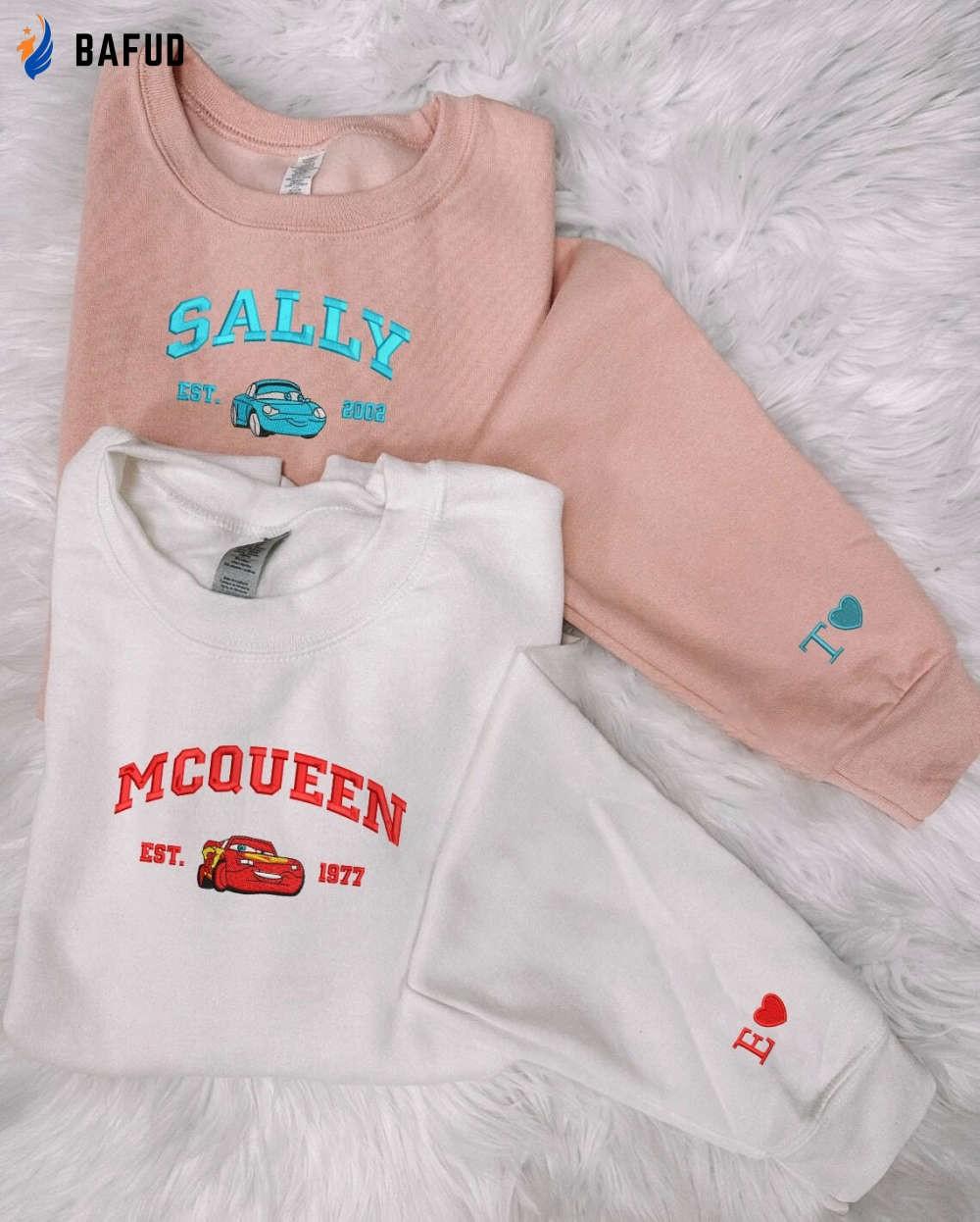 Cars Mcqueen x Sally Embroidered Sweatshirt –Trending Cartoon Couple Christmas Crewneck