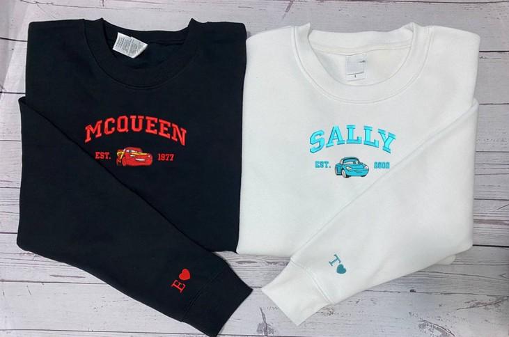 Cars Mcqueen x Sally Embroidered Sweatshirt –Trending Cartoon Couple Christmas Crewneck Perfect Christmas Gift EH334-335 H C
